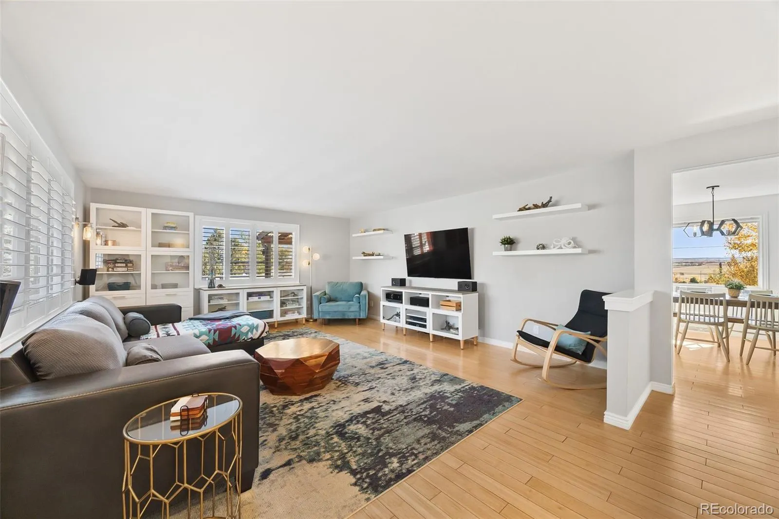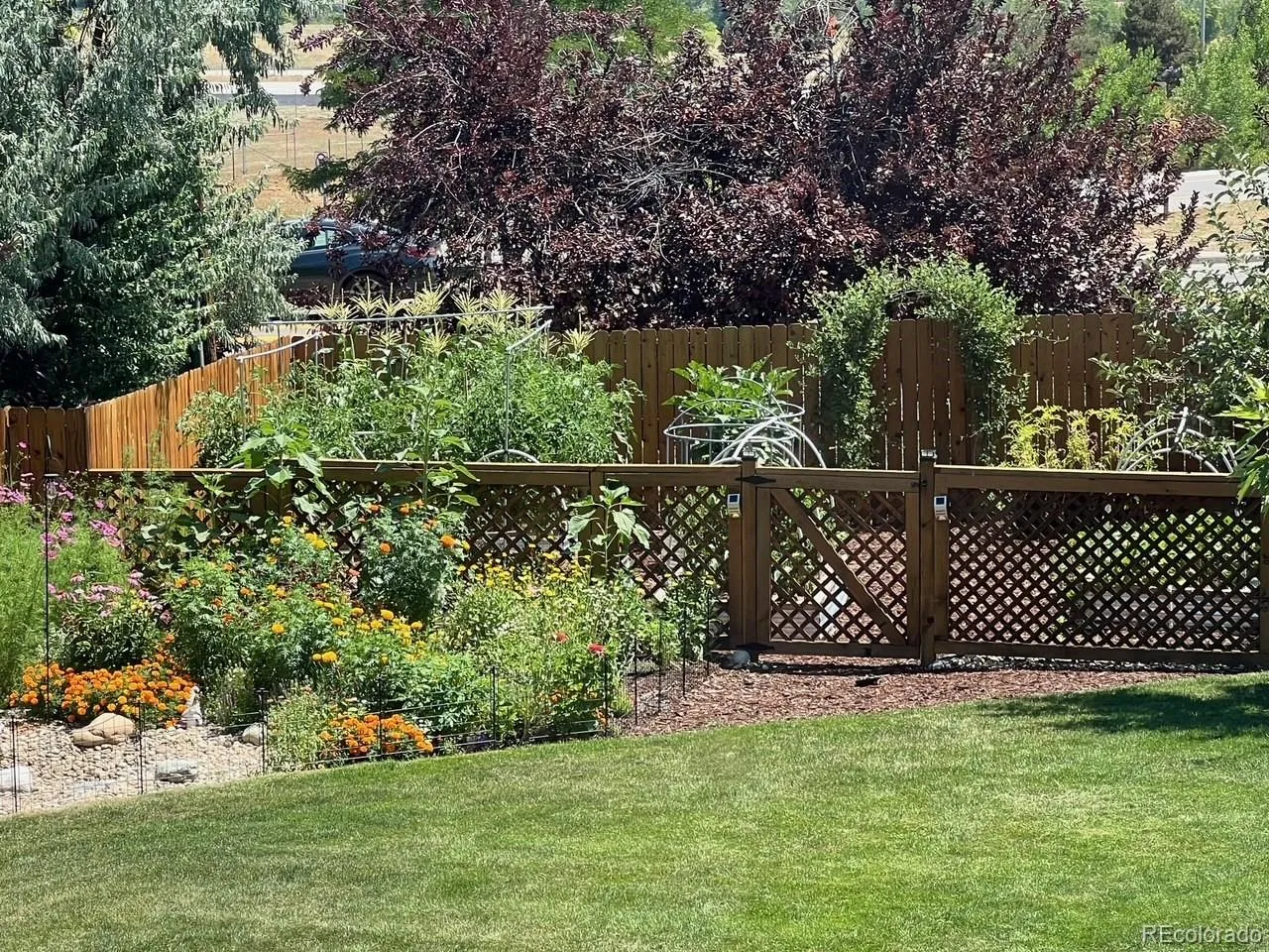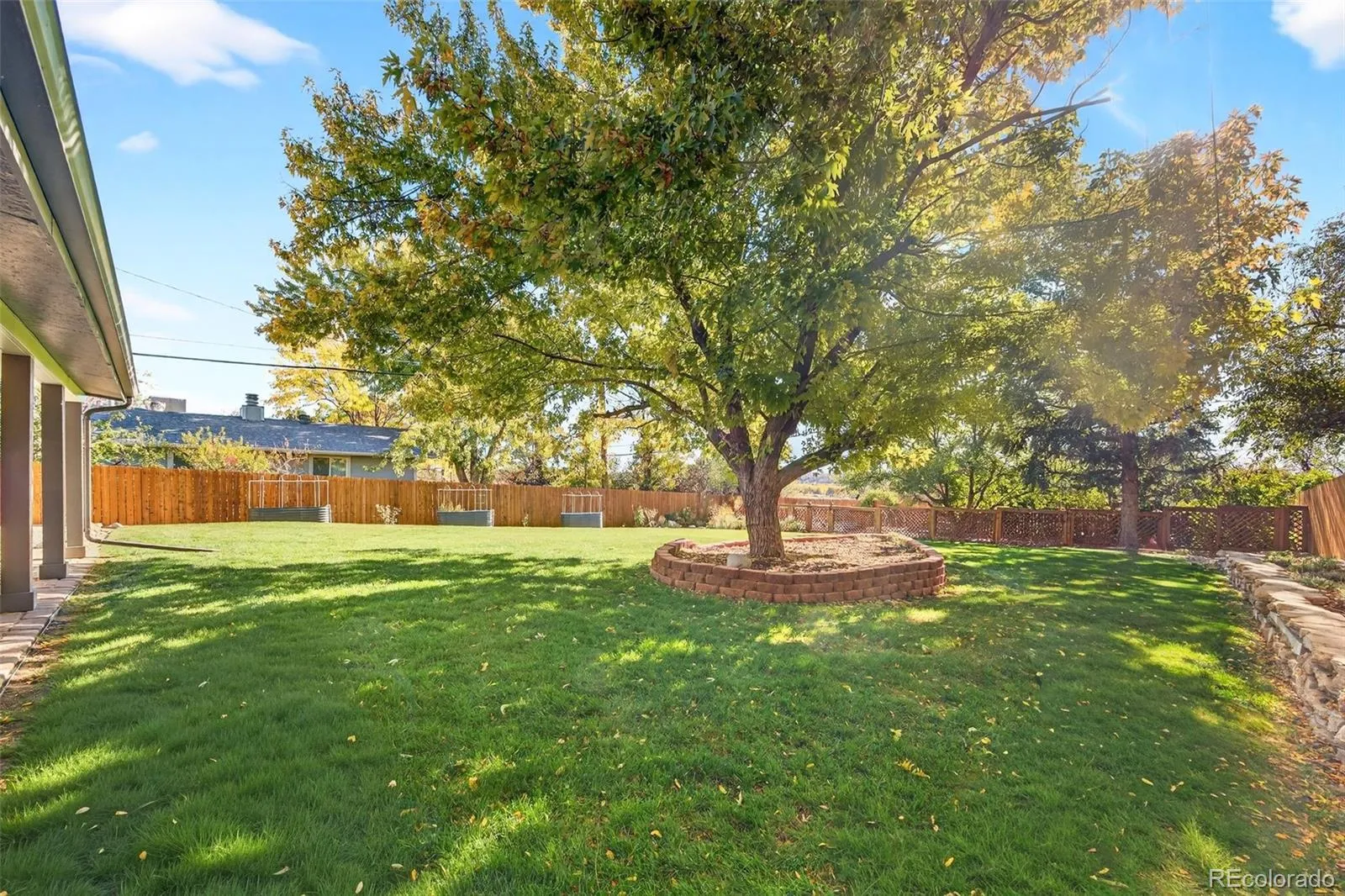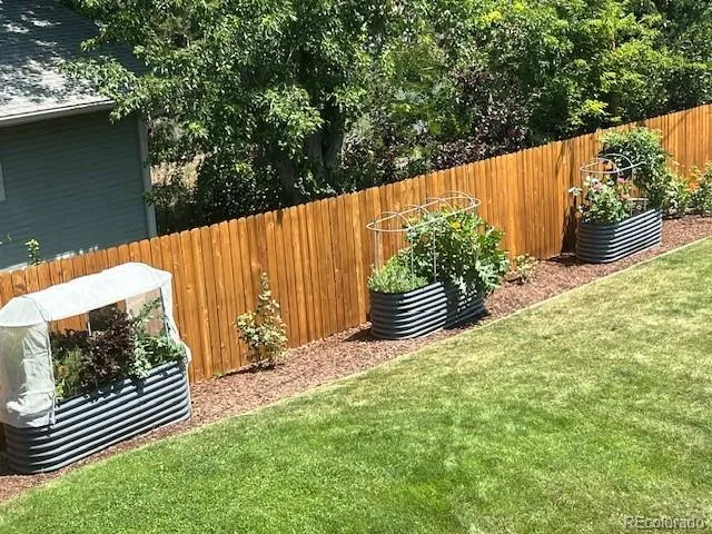 Welcome to this beautifully updated raised ranch in the lovely Columbine Hills neighborhood of Littleton. Sitting on a generous one-third acre lot, this home offers four bedrooms and three bathrooms, blending modern comfort with classic Colorado charm. Inside, you’ll find hardwood and luxury vinyl plank flooring throughout, large windows that fill the home with natural light, and updated window coverings that add a fresh, finished touch. The spacious upstairs living room features hard wired surround sound media and is wrapped in windows that frame peaceful neighborhood views. The kitchen includes granite countertops, stainless appliances, and an eat-in dining space overlooking the backyard. Downstairs, the walkout basement extends your living space with a cozy den anchored by a gas fireplace also including surround sound media – perfect for relaxing movie nights or gatherings. This level also includes a bedroom with french doors, en suite bathroom, perfectly finished laundry room, and access to the finished two-car garage, complete with a dedicated workshop area for hobbies or extra storage. Step outside to the true wow factor of the home. Enjoy the Colorado lifestyle with a wraparound front porch and a covered back patio that looks out toward Chatfield Reservoir—ideal for entertaining, barbecuing, or simply taking in the sunset. The backyard and gardens are a sight to behold and must be viewed in person. The expansive lot offers endless potential for supplementing the established gardens, play, or pets. Located just minutes from popular restaurants, retail, and recreation along Wadsworth and Chatfield, this home combines a quiet neighborhood setting with unbeatable convenience. Move-in ready and thoughtfully updated, this Columbine Hills gem is the perfect place to call home.