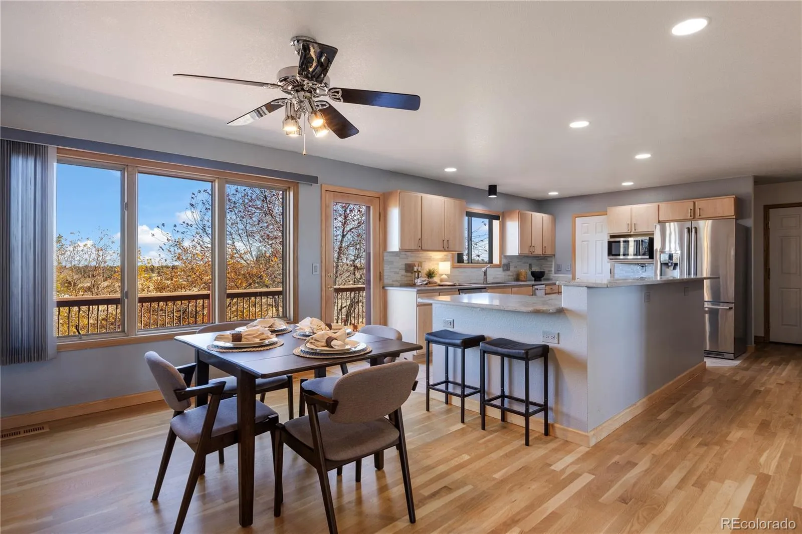 Escape to over six acres of serene Colorado countryside at the end of a quiet cul-de-sac in sought-after Amanda Pines Estates. Perfect for country or equestrian living, this Parker residence offers a seamless blend of privacy and space. Step inside to a bright, open floor plan with soaring ceilings, walls of windows, and tree-lined views that frame the barn with views of your horses ~ animals at all times. The chef’s kitchen showcases sleek stainless steel appliances, quartz countertops, and a walk-in pantry, while the formal dining room sets the stage for memorable gatherings. Relax in the inviting great room beside a wood-burning fireplace, or step onto the full-length deck to enjoy peaceful sunsets. The primary suite is your private retreat, complete with its own balcony for morning coffee or evening sunsets, dual walk-in closets, and a spa-inspired five-piece bath with a soaking tub and glass shower. Upstairs, you’ll find three additional bedrooms with generous closet space and a convenient laundry area. A main-floor office provides an ideal work-from-home space. The finished walkout basement offers another fireplace, an additional bedroom and bath, and a theater like area ~ perfect for movie nights or entertaining. Equestrian enthusiasts will appreciate the three-stall barn with power, water spigot, and hay storage, plus ample space to add an outdoor arena. The insulated three-car garage with epoxy floors ensures plenty of storage and easy upkeep. Tucked away for privacy, yet only minutes from Parker’s shops, dining, and Douglas County schools, this property delivers the best of Colorado country living without sacrificing convenience. It just keeps giving! Come see it today.