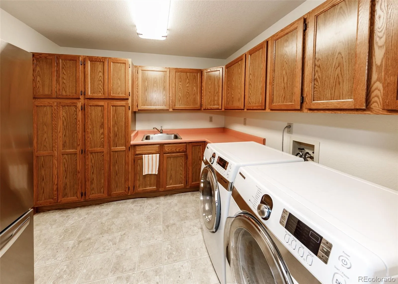Adjacent to the kitchen is a well-equipped laundry room with extra storage, a utility sink, and washer and dryer included — making daily routines both efficient and comfortable.