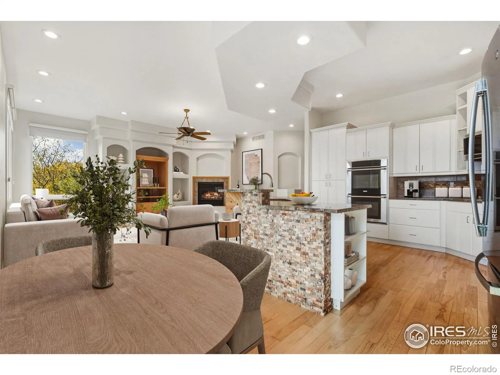 Welcome to this exceptional custom built ranch-style patio home with a walk-out basement, perfectly situated on the shores of Boedecker Reservoir in the highly sought-after Mariana Cove neighborhood. This spacious and beautifully maintained home has been freshly painted throughout and features brand new carpet as well as gleaming hardwood floors, offering a move-in ready opportunity. The beautiful custom kitchen includes a large center island, copious amounts of cabinetry with pull-outs, and high-end stainless steel cooking appliances-all set up for the gourmet chef! The kitchen effortlessly connects to the dining and living areas, highlighted by custom built-ins and a welcoming fireplace – all framed by expansive windows showcasing the amazing lake views. The dining area opens to a large composite deck overlooking the water – an ideal setting to take in the peaceful surroundings commonly populated by wildlife. The main level also includes a generous primary suite with a luxurious five-piece bathroom and a spacious double walk-in closet, along with a flex room that can be used as a formal dining room or a study, laundry room, and an additional bed and full bath. The finished walk-out basement offers even more space to gather and unwind, featuring a large rec room with built in office area, a wet bar, two additional bedrooms, a 3/4 bath, a wine cellar, and a substantial storage area. From this level, you can enjoy easy access to the beautifully landscaped backyard and the reservoir beyond. Boedecker Reservoir provides opportunities for non-motorized recreational water activities. This home offers direct access to nearby walking trails and is just minutes from the Mariana Butte Golf Course. The Loveland bike path, with its 26 miles of connected trails, is also close at hand. Combining relaxed lakeside living with thoughtful design and a prime location in one of Loveland’s most sought-after neighborhoods, this property captures the best of Colorado living.