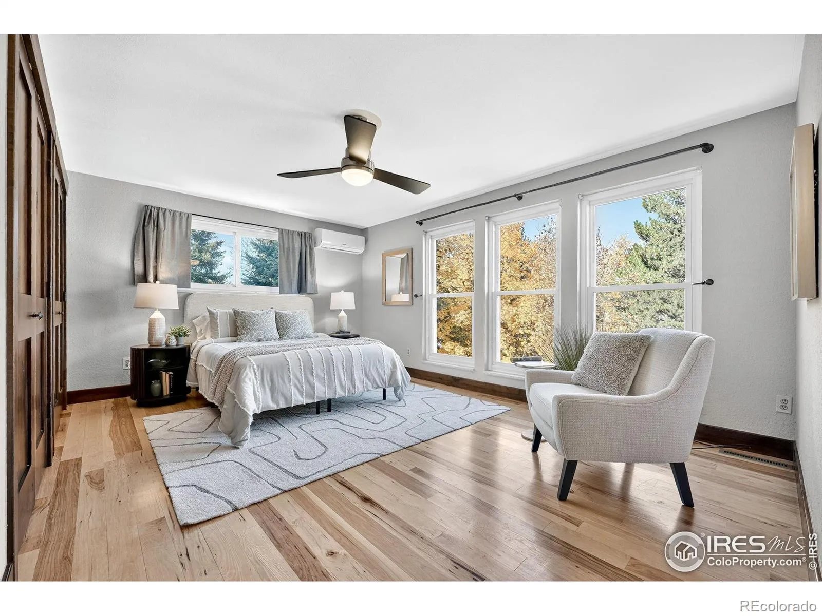 Move in before 2026 and enjoy easy Colorado living in this spacious home! Positioned in a lovely neighborhood near trails on an oversized 10,000+ SF lot, this home offers multiple living spaces that create an optimal layout. Vaulted ceilings and an open living room welcome you in, complete with double coat closets. Head into the wraparound kitchen with updated cabinetry, pantry, stainless steel appliances, and an eat-in island. The kitchen opens to both a separate dining space and the backyard patio, making entertaining (or morning coffee) a breeze. Hickory wood floors on the main level and upstairs (no carpet in this home!) and skylights keep everything bright and warm.The primary suite is your upstairs retreat, featuring heated bathroom floors and its own split system for personalized comfort, in addition to central A/C and heat. Downstairs, enjoy a huge family room with a fireplace and built-ins-perfect for movie nights-plus a separate, oversized, tiled game room with a standalone gas stove for hobbies, play, or hangouts. Everyday convenience shines with a mud room/drop zone and a laundry room with washer/dryer, folding and storage space, and a half bath off the lower-level garage entry. Outside, relax under the gazebo, enjoy the spacious lot with mature trees, store your extra gear in the shed, and savor the privacy of this peaceful neighborhood. Close to trails, coffee, shops, Boulder, and Longmont – this is Gunbarrel living at its easiest.