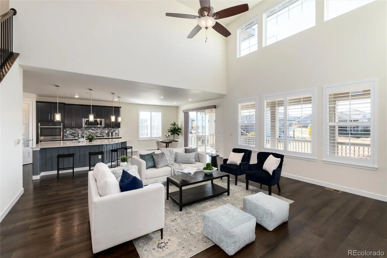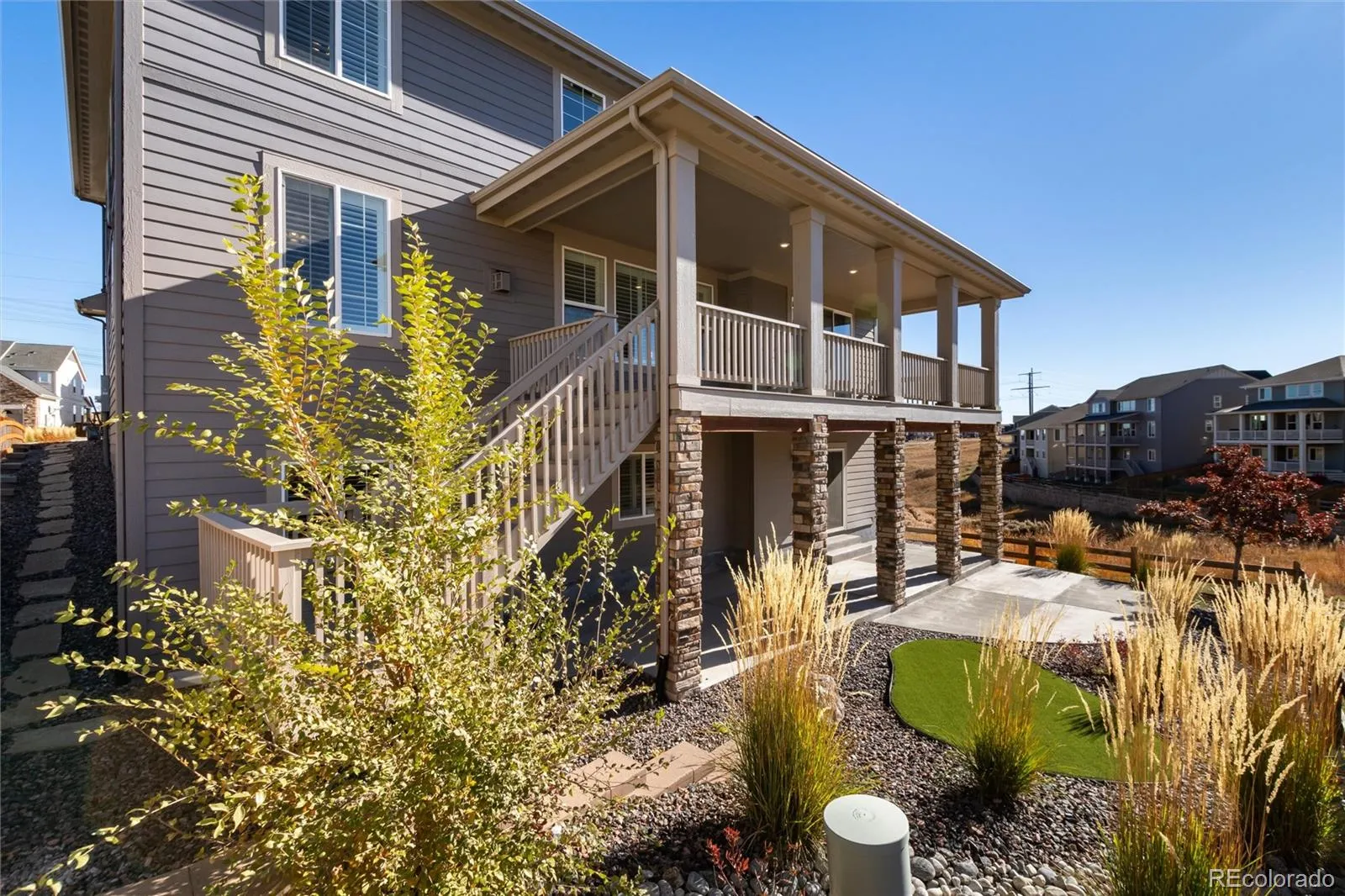 The fully finished walkout basement transforms your lifestyle with a sophisticated wet bar and striking modern fireplace, creating the ultimate entertainment space. A 5th bedroom and bath for guests plus a powder bath with easy access from the family room. Bonus room is perfect for a home gym! Step outside to enjoy the Colorado sunshine on your patio while taking in the tranquil open space backdrop—no rear neighbors, just nature’s beauty. So many upgrades: plantation shutters throughout, dual furnace and AC units, whole house humidifier, smart home features (thermostat, fans, lighting) and 2 garages with epoxy floor coating.