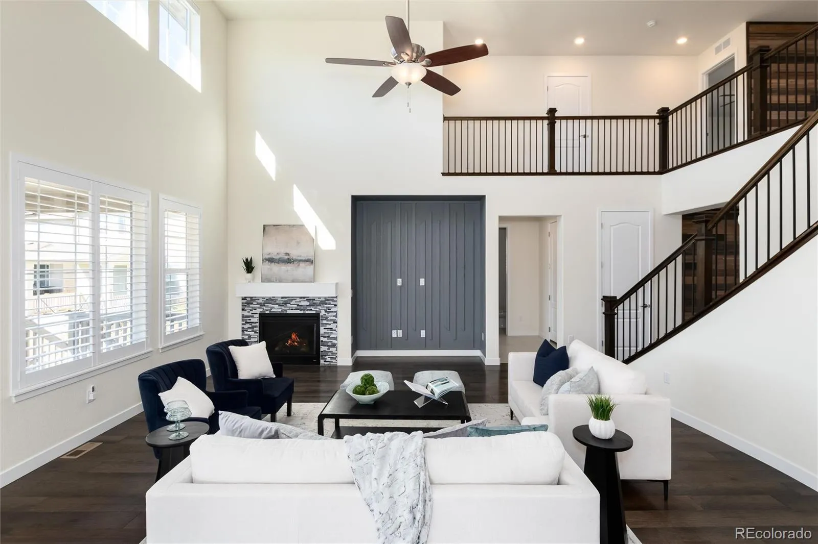 The fully finished walkout basement transforms your lifestyle with a sophisticated wet bar and striking modern fireplace, creating the ultimate entertainment space. A 5th bedroom and bath for guests plus a powder bath with easy access from the family room. Bonus room is perfect for a home gym! Step outside to enjoy the Colorado sunshine on your patio while taking in the tranquil open space backdrop—no rear neighbors, just nature’s beauty. So many upgrades: plantation shutters throughout, dual furnace and AC units, whole house humidifier, smart home features (thermostat, fans, lighting) and 2 garages with epoxy floor coating.