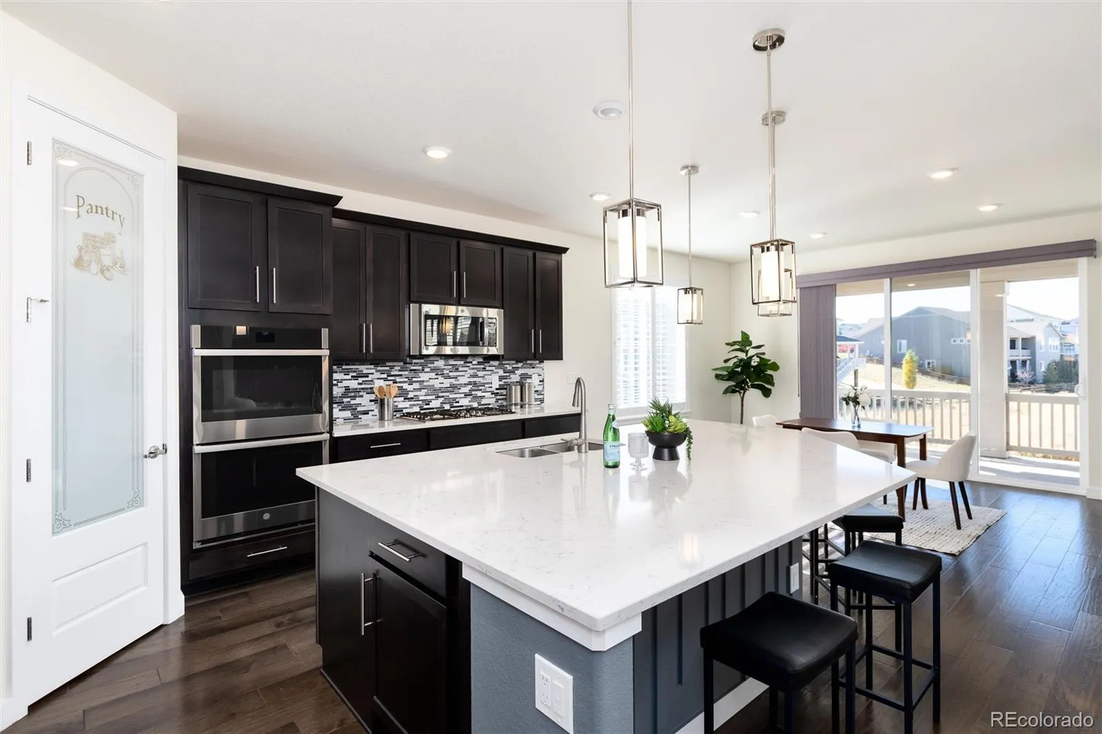 Discover this exceptional 5-bedroom, 7-bath home nestled on a cul-de-sac lot in Castle Pines. With breathtaking open space views, this home represents the pinnacle of Colorado luxury living. From the moment you enter, soaring ceilings and abundant natural light showcase the impeccable attention to detail and high-end finishes. The gourmet kitchen is a chef’s dream, featuring a vast quartz island, top-of-the-line appliances, custom cabinetry, and a spacious walk-in pantry that makes organization effortless. Adjacent eat in space leads to the covered deck on the open space.