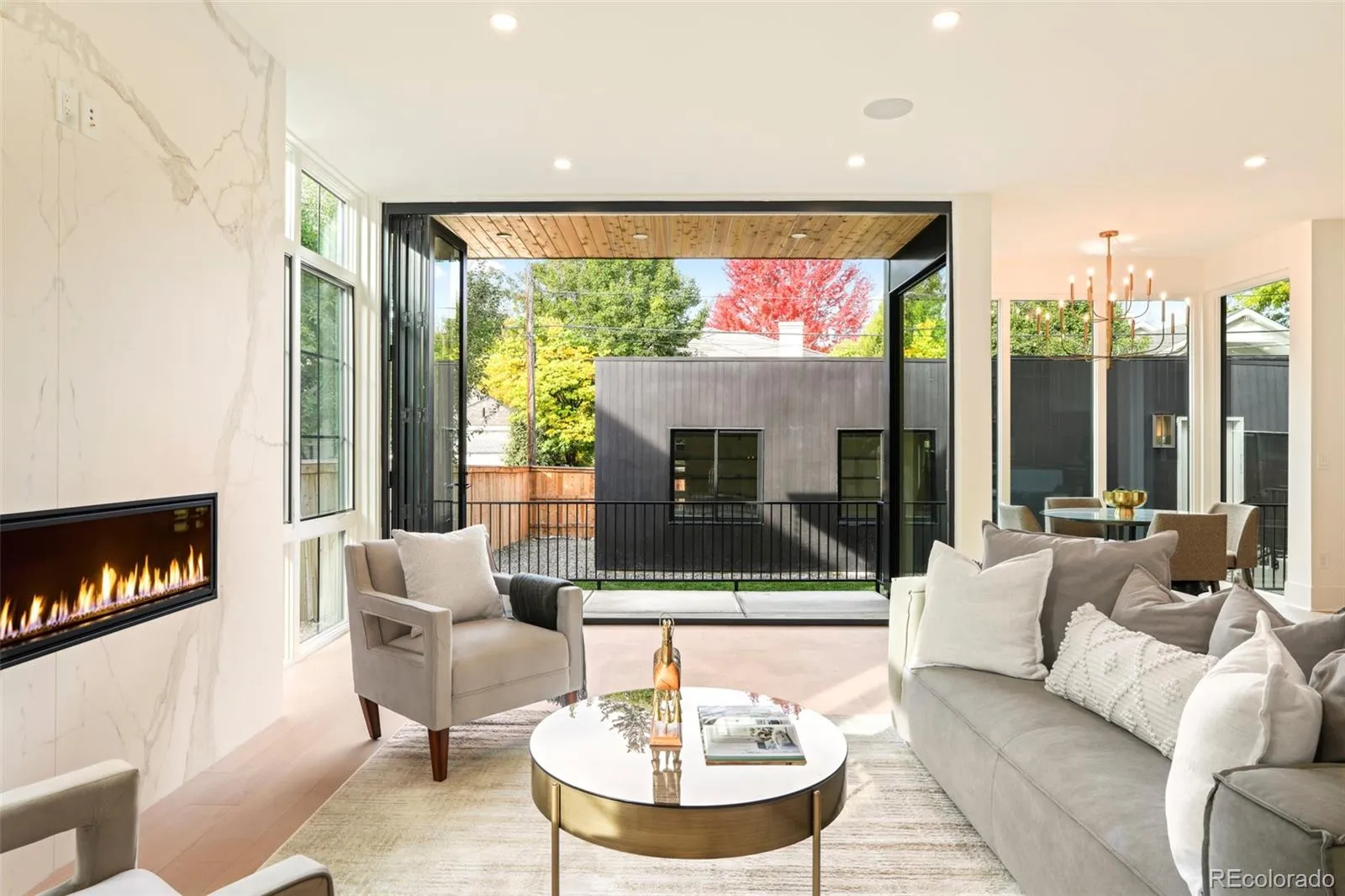 Enter into a luminous, contemporary sanctuary in the heart of East Washington Park — just moments from the park itself. Every inch of this new construction home is designed to captivate, from the airy, open layout to walls of glass that bathe each space in natural light. Accordion doors in both the front and back of the home create seamless indoor-outdoor living, opening the formal dining and living spaces to tranquil patios perfect for entertaining. The chef’s kitchen is a statement in modern design, anchored by a striking waterfall island with seating — ideal for casual gatherings or elegant soirées. A built-in bar and gas fireplace add warmth and sophistication to the living area, while the private office with custom millwork offers an inspiring workspace. Upstairs, the primary suite is a true retreat, featuring vaulted ceilings, a dual-sided fireplace, and a spa-like bathroom complete with a steam shower. For ultimate relaxation, the lower-level gym includes a large sauna and steam shower, creating a private wellness haven. Host guests or unwind on the third-floor wrap-around patio with a fireplace and sweeping mountain views. A three-car garage offers convenience and space, while the ideal location provides effortless access to both Washington Park and the boutiques and restaurants along Gaylord Street. From its luminous interiors to its thoughtful amenities, this home embodies modern sophistication, comfort, and an unmistakable sense of style — where city living meets serene retreat.