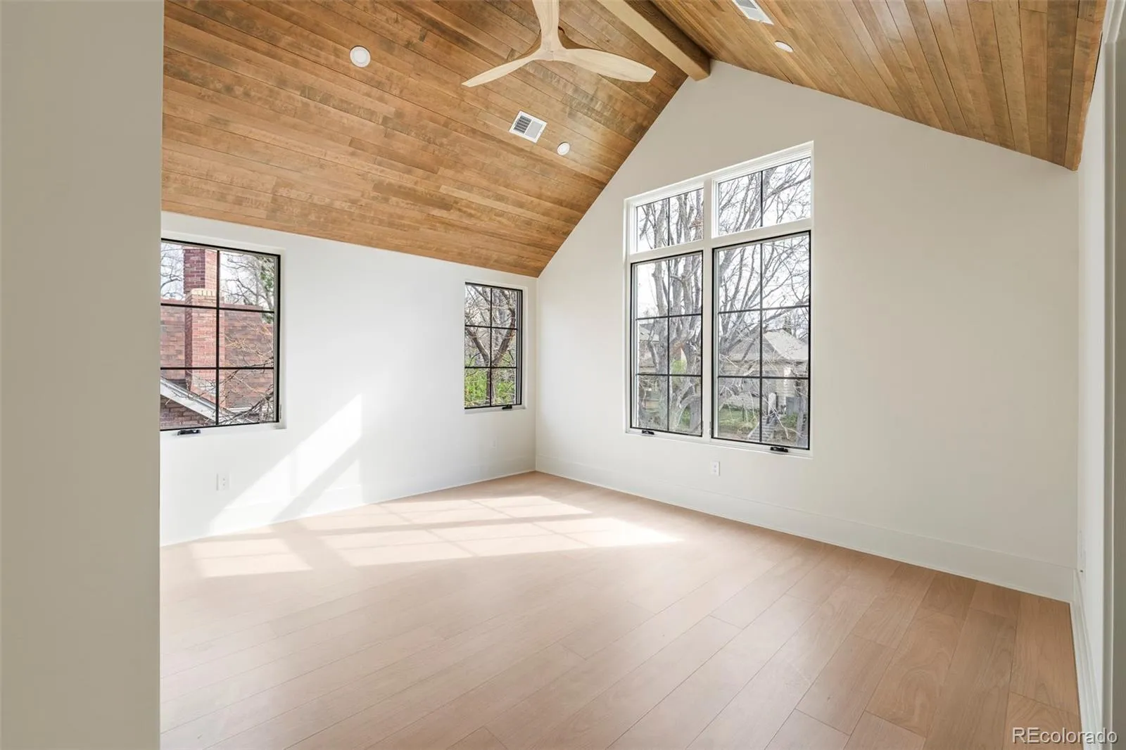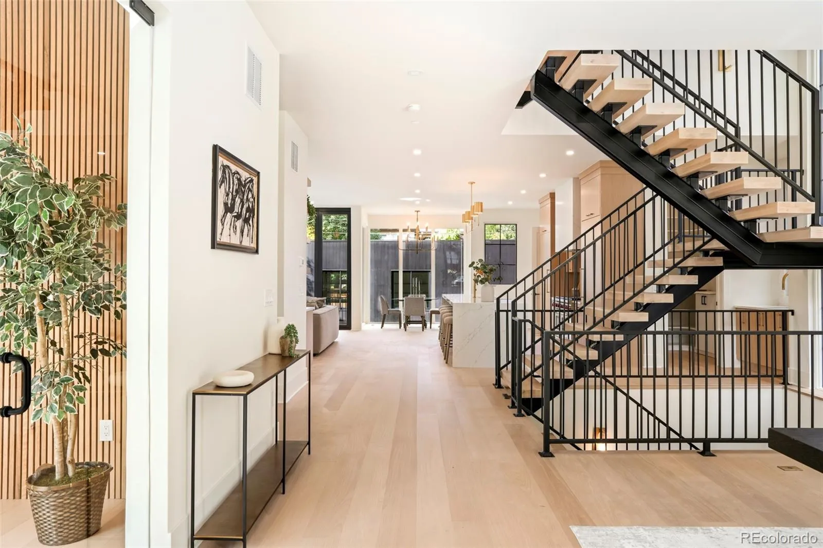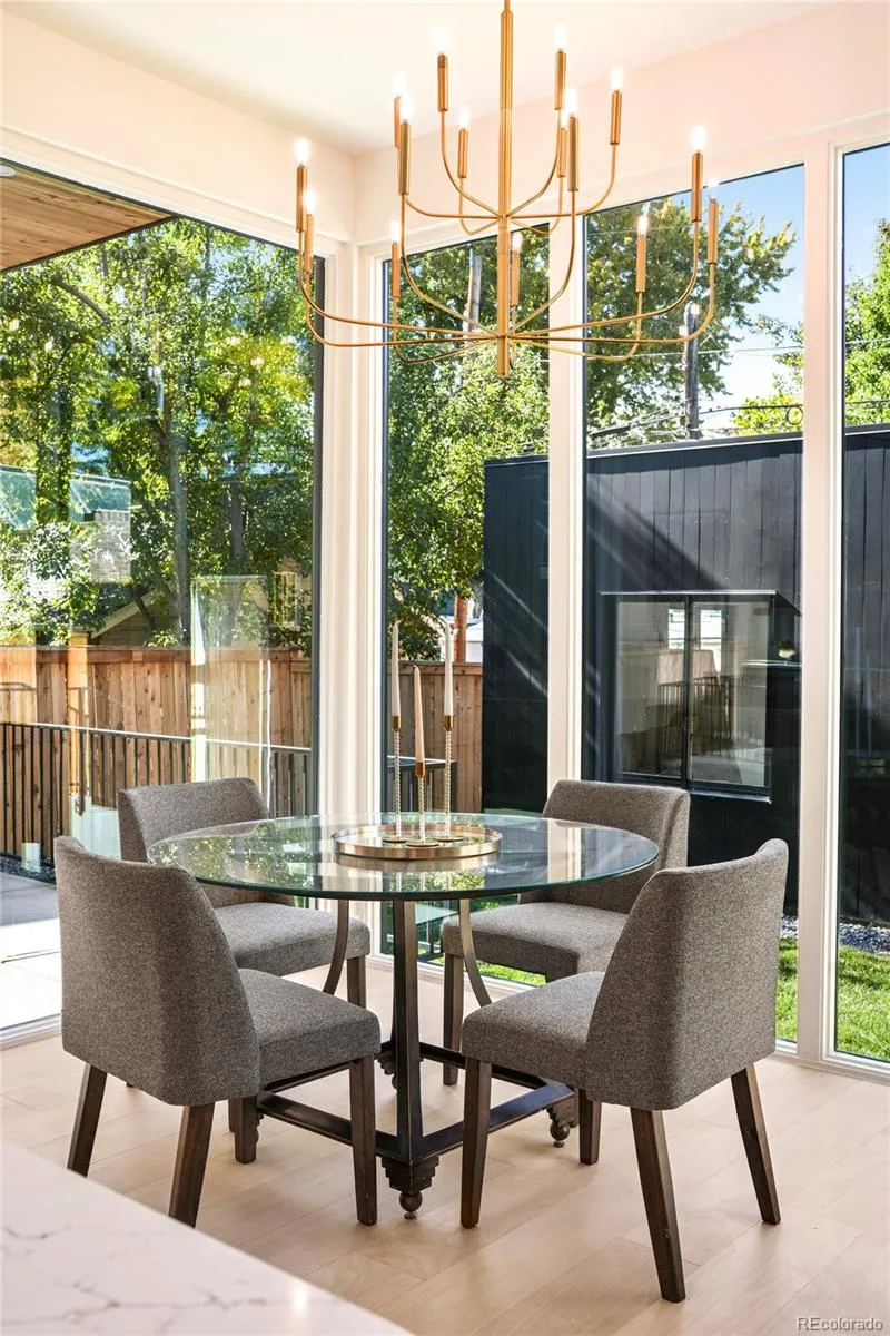 Enter into a luminous, contemporary sanctuary in the heart of East Washington Park — just moments from the park itself. Every inch of this new construction home is designed to captivate, from the airy, open layout to walls of glass that bathe each space in natural light. Accordion doors in both the front and back of the home create seamless indoor-outdoor living, opening the formal dining and living spaces to tranquil patios perfect for entertaining. The chef’s kitchen is a statement in modern design, anchored by a striking waterfall island with seating — ideal for casual gatherings or elegant soirées. A built-in bar and gas fireplace add warmth and sophistication to the living area, while the private office with custom millwork offers an inspiring workspace. Upstairs, the primary suite is a true retreat, featuring vaulted ceilings, a dual-sided fireplace, and a spa-like bathroom complete with a steam shower. For ultimate relaxation, the lower-level gym includes a large sauna and steam shower, creating a private wellness haven. Host guests or unwind on the third-floor wrap-around patio with a fireplace and sweeping mountain views. A three-car garage offers convenience and space, while the ideal location provides effortless access to both Washington Park and the boutiques and restaurants along Gaylord Street. From its luminous interiors to its thoughtful amenities, this home embodies modern sophistication, comfort, and an unmistakable sense of style — where city living meets serene retreat.