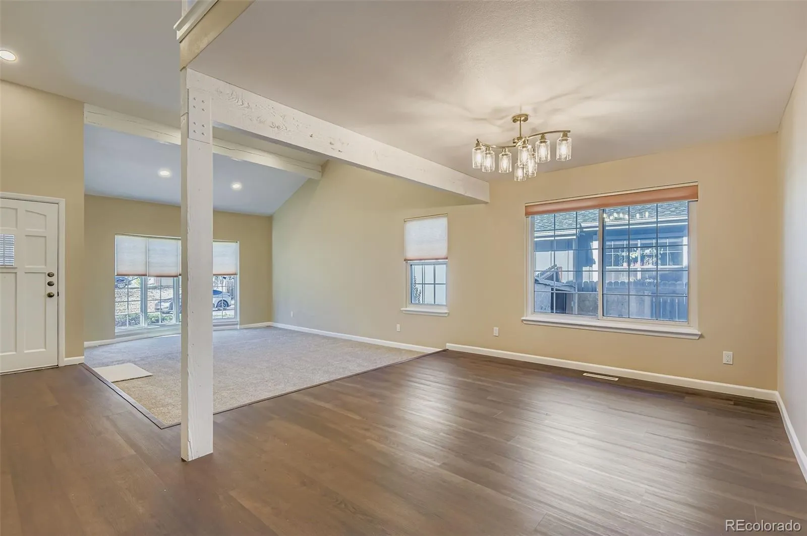 **Custom can lighting in the vaulted living room and kitchen