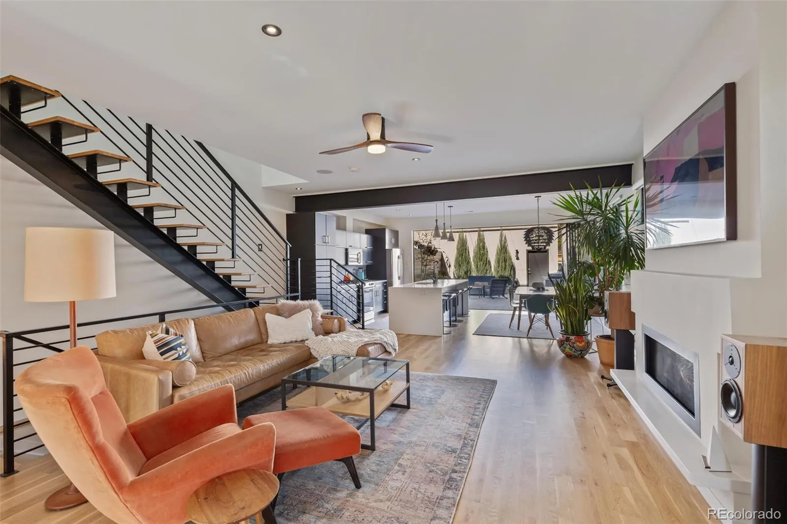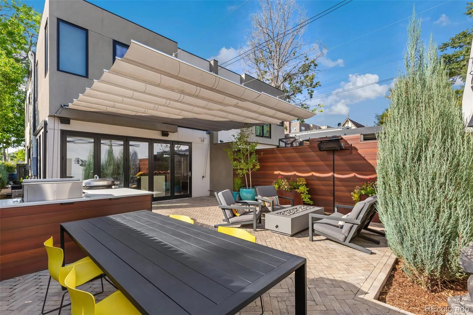 Welcome to this stunning modern residence in Denver’s coveted West Highlands neighborhood. With 9ft+ ceilings, refined finishes, & an abundance of natural light, this property perfectly blends style, comfort, and functionality. The open-concept main floor features newly refinished hardwood floors, a gas fireplace, custom lighting, and a striking floating staircase with sleek steel railings. The expansive kitchen is an entertainer’s dream with a large island, premium appliances, and accordion doors that open seamlessly to an epic backyard oasis. The outdoor living space is unmatched, featuring a custom kitchen with a commercial-grade flat-top grill, pellet grill & smoker, infrared heater, outdoor speakers, high-output gas line for fire pit, and retractable sun shades. Perfect for year-round indoor/outdoor living! A dedicated main-floor office with a large window and privacy doors provides an ideal work-from-home retreat. Upstairs, the serene primary suite delivers a spa-like 5-piece bath and walk-in closet, plus 2 additional bedrooms, and a full bath. The fully finished basement boasts 9ft ceilings, egress windows, & a flexible layout with a guest suite and private bath, plus a family room, gym, and storage. Additional highlights include a radon mitigation system, a new commercial-grade water heater, new windows, interior paint, and a high-efficiency A/C. The home is equipped with built-in speakers all over and full audio & security wiring. Detached 2-car garage, extra storage and a 220-volt outlet for fast EV charging. The location is unbeatable—steps from Highlands Square, Cerebral Brewery, shops, restaurants, Sloan’s Lake, the farmer’s market, and minutes to downtown Denver. Enjoy morning coffee in the front yard and soak in the energy of one of Denver’s most desirable neighborhoods. This residence is a lifestyle; designed to deliver modern style, exceptional outdoor living, and an unmatched walkable location that makes this home truly special.