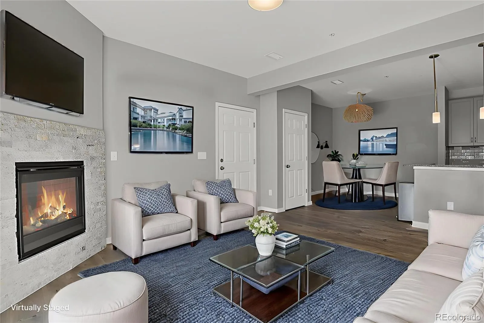 Welcome to this Heavily Upgraded condo with a 1 Car Detached Garage! Offering almost 1,400 SQUARE FEET of open/light/bright living space! You’re going to love the large living room with a corner fireplace for cozy Colorado winters! The living room also has easy access to the large private balcony, perfect for relaxing, sipping coffee, BBQ or enjoying the view. The Beautiful High-end kitchen features Quartz counter-tops, stainless steel appliances, upgraded cabinets, tile backsplash, breakfast bar seating…flows seamlessly into the breakfast nook, and opens to the living area, creating a comfortable and functional space for entertaining. The large primary bedroom includes an ensuite bath with dual sinks, a walk-in shower, and a spacious walk-in closet, while two additional bedrooms provide flexibility for a variety of needs and have a full bath just steps away. The handy and convenient laundry room includes the newer Washer and Dryer! All mounted T.V.s and wall mounts are included!