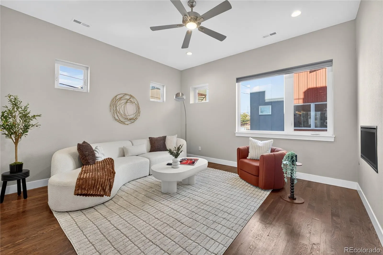 Incredible opportunity to own a premier modern residence in the heart of the Santa Fe Art District—where culture, creativity, and comfort come together. This three-level home plus rooftop deck offers incredible views and a lifestyle that’s as inspiring as the neighborhood itself. Art and culture lovers will be surrounded by galleries, studios, & shops just steps away. On 1st Fridays, the area transforms into an immersive experience with food trucks & street performances. After soaking up the atmosphere, retreat to your private rooftop deck to unwind and enjoy the skyline, mountains, and vibrant city life—all without worrying about parking. Inside, tall ceilings and expansive west-facing windows fill the home with natural light. The open-concept layout features high-end finishes and thoughtful craftsmanship throughout. The luxurious primary suite is a serene retreat, complete with a spa-inspired bath and private balcony. An additional balcony off the dining area provides outdoor spaces for morning coffee or evening relaxation, while the rooftop deck delivers 360-degree views that truly steal the show—especially on the Fourth of July, when fireworks light up the entire city and mountains beyond. The location is unbeatable, with local restaurants & coffee spots within easy walking distance, such as Tacos Selene, and ESPHifi. Enjoy nearby Lincoln Park and Sunken Gardens for a dose of outdoor serenity without the maintenance of a yard. For bikers, the South Platte & Cherry Creek trails are right at your doorstep, and the planned 5280 Trail will make car-free city living even easier. Quick access to the 10th & Osage light rail, Santa Fe bus routes, major highways, and countless scooter and bike options. Additional highlights include no HOA fees, a newer pergola, and a thoughtful design that avoids the cramped feeling of a typical slot home. From sunrise views of Mt. Blue Sky to sunsets over the Rockies, every day here feels like a masterpiece in the making.
