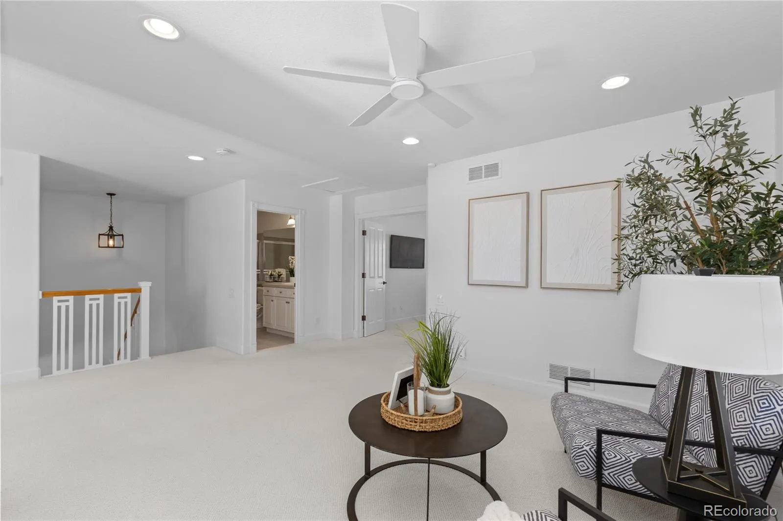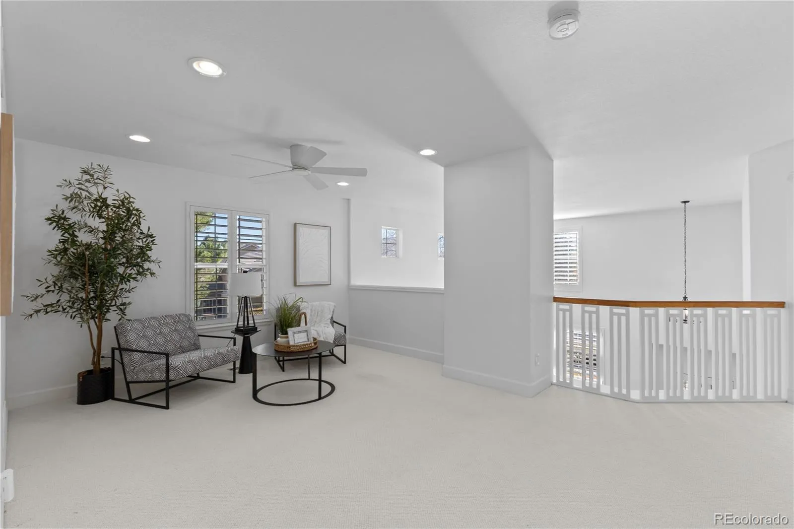Upstairs, new carpet, ceiling fans, and LED lighting enhance every space. The open loft serves as a perfect home office, reading nook, or flex area, connecting the guest suite to the impressive primary bedroom retreat. The primary suite offers dual closets and a luxurious five-piece bath, creating the ultimate place to unwind.