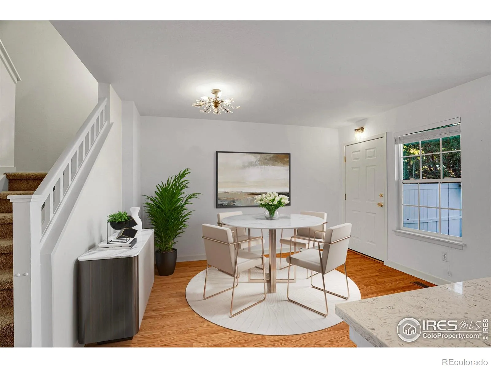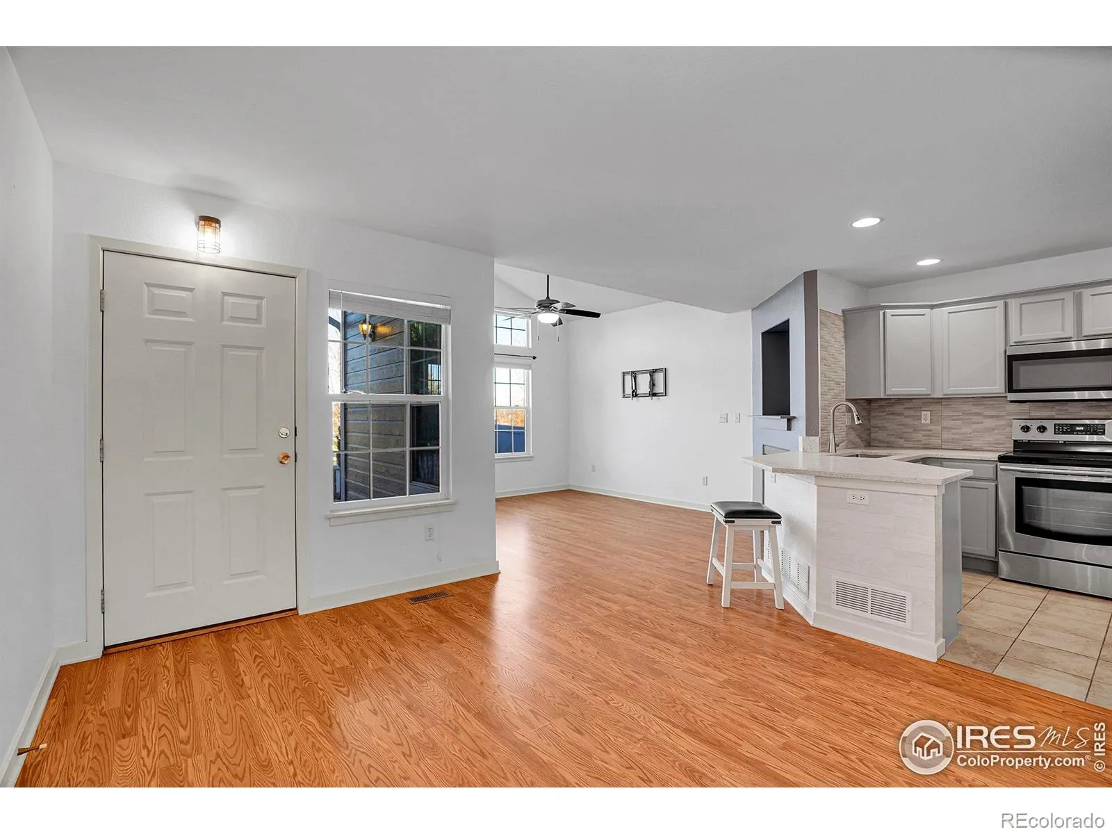 HUGE PRICE IMPROVEMENT $20k. BEST DEAL IN INDIAN PEAKS. Amazing views of Longs Peak from your private front patio. Don’t miss the opportunity to see the most exquisite sunsets. This stunning townhouse is situated in the coveted Indian Peaks Community. Hidden behind the white picket fence, overlooking the community green space and lovely tree foulage, is a private front patio with flagstone and garden space. Open the door to an inviting open floor plan with tons of natural light from all the picturesque windows and stunning low maintenance laminate wood flooring on the entire main level providing easy living. Spacious living room with modern built in gas fireplace and mantel perfect for Colorado winters. Centered around the focal point is a functional and efficient kitchen with painted cabinets, quartz counters, inset S/S farm sink, tile backsplash and S/S appliances. The kitchen has a open and airy feel, allowing for a perfect entertaining space. Separate dining room and extra bar space allow for you to entertain in one place. This perfect floor plan features 2 bedrooms and full bath on one level giving privacy to the primary suite. Primary suite with views of the mountains with attached primary 5 pc bath and large dual walk in closets. Basement is fully finished with open concept to make this anything you desire, great rec room, family room or work out room. Laundry with washer & dryer and storage space. Attached 2 car garage. Great location close to shopping, YMCA, dining, trails, golf course and many parks. Easy access to Highways for a quick commute to Boulder/Longmont or Denver. Don’t miss this opportunity.