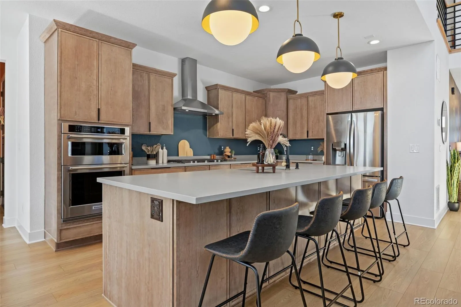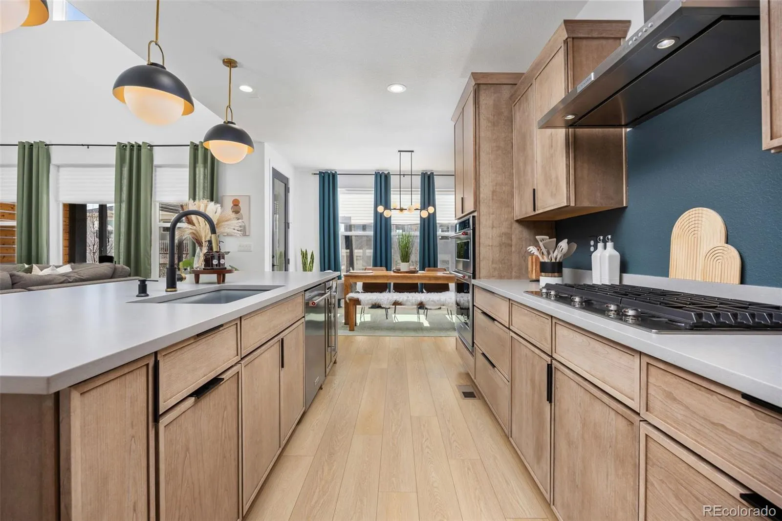 These sellers spared no expense! The kitchen features lots of luxury upgrades to include: Concrete hued Quartz countertops, Single Basin Composite sink, Cherry Wood, thin shaker, cappuccino stained cabinets with soft close drawers and doors, KitchenAide Appliances, Wine/Beverage Fridge, Extra Large Island with storage on both sides, oversized designer pendants above the island and gas cooktop!