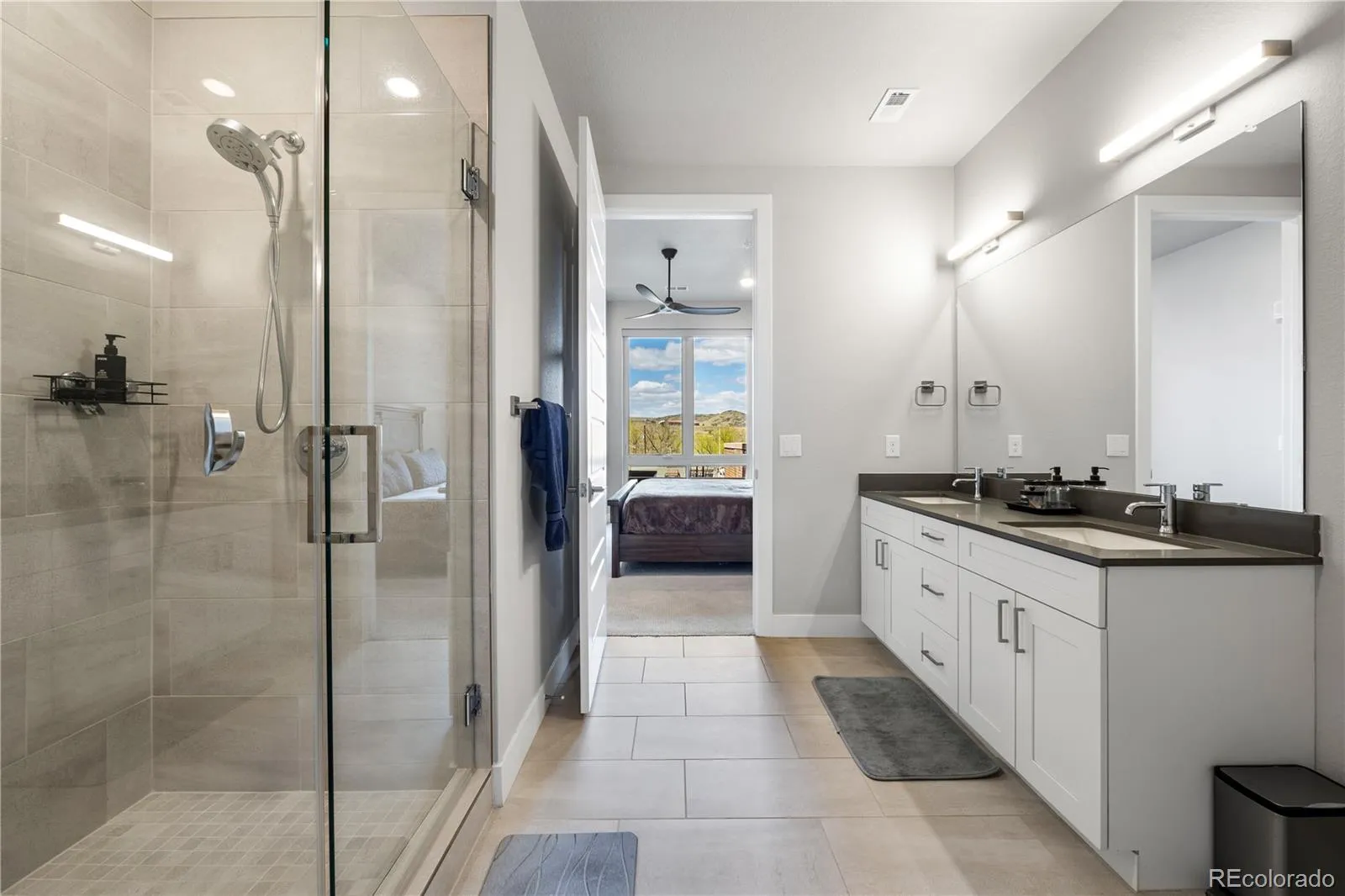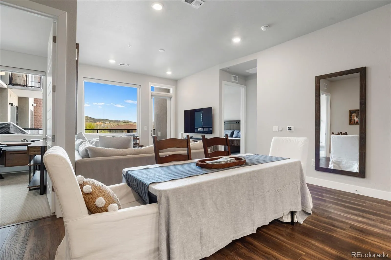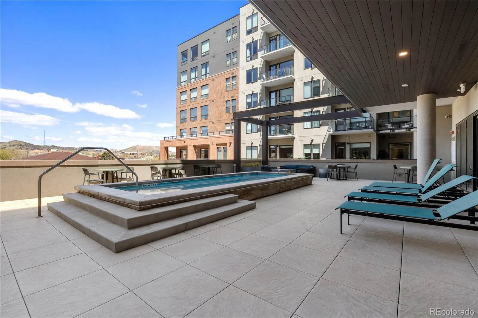 ** PRICED BELOW VALUE WITH HIGHLY MOTIVATED SELLER ** Imagine being steps to restaurants, shops, cafes, salons, and Festival Park — where there are weekly events such as Farmer’s Markets, Art Shows, and live music. A true downtown lifestyle in the highly-desirable Encore building, right in the heart of downtown Castle Rock. The newly-built condo building features a contemporary and sophisticated design and offers amazing amenities that cater to everyone. This 2nd floor unit has an ideal, west-facing direction overlooking the courtyard with scenic, hilltop views. Stylishly designed and beautifully updated with upgrades, the condo features premium, Hunter Douglas electronic blinds, Google smart home technology, newly installed laundry room storage, and includes two deeded parking spaces. The open floorplan has coveted 10-foot ceilings and is oriented around generously-sized windows with views. The stunning kitchen showcases slab quartz countertops, stainless-steel KitchenAid appliances, and a large center island with seating, plus the adjacent dining area is large enough for entertaining. The spacious primary bedroom features an ensuite luxury bathroom, equipped with frameless glass shower, quartz countertops, and double vanity. Living at the Encore is truly a lifestyle. The amenities include a well-equipped fitness center, clubhouse with kitchen and pool table, 25-person jacuzzi, lounge with golf simulator, dog park, pet spa, outdoor lounging areas with fire pits and grills, and sleek common areas for working or relaxing. Onsite security and key fob entry keeps the building safe and secure and the units have smart, keypad locks for easy access, and two deeded parking spaces come with the unit. The location offers an easy commute to Denver, DTC, or Colorado Springs and there’s so much to do right at your fingertips. This is the best of luxury and low-maintenance living. Don’t miss this opportunity!