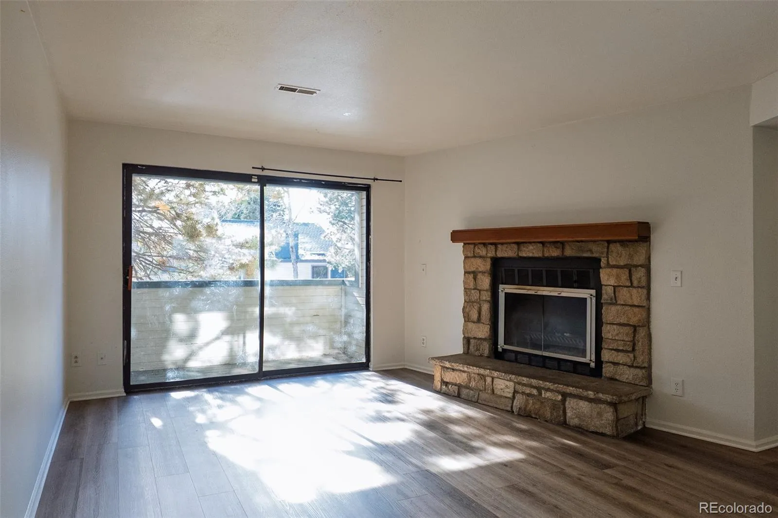 Natural light pours through large windows, highlighting the inviting living space complete with a wood-burning fireplace for those cozy Colorado evenings. The Jack-and-Jill bathroom offers an efficient and functional design, connecting both spacious bedrooms, with new carpet, for ease and privacy.