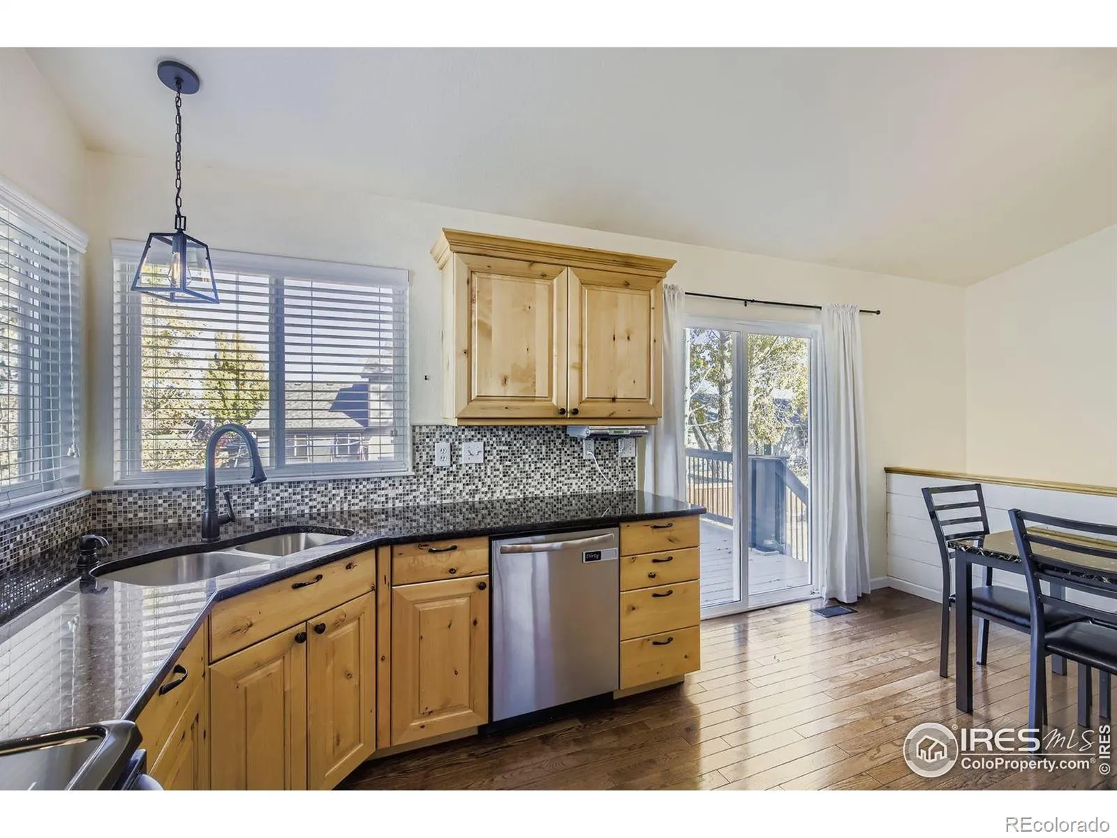 Welcome to this stunning 4-bedroom, 3-bathroom ranch-style home perfectly situated in a highly desirable location with easy access to Berthoud/Longmont and Fort Collins. This spacious, open-concept home features a bright and inviting main level with vaulted ceilings and plenty of natural light. The kitchen offers newer custom cabinets, stainless steel appliances, granite countertops. the kitchen flows seamlessly into the dining and living areas-perfect for entertaining or relaxing. The finished garden-level basement offers additional living space, ideal for a recreation room, home office, or guest suite. Enjoy Colorado’s beautiful seasons, large backyard featuring a composite deck, perfect for outdoor dining and gatherings. The 2-car garage provides plenty of storage and convenience.