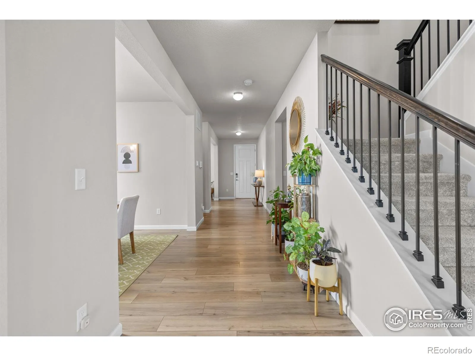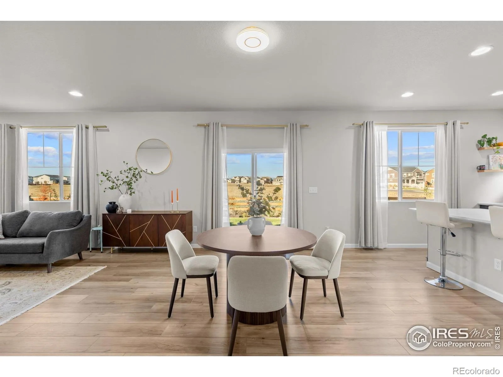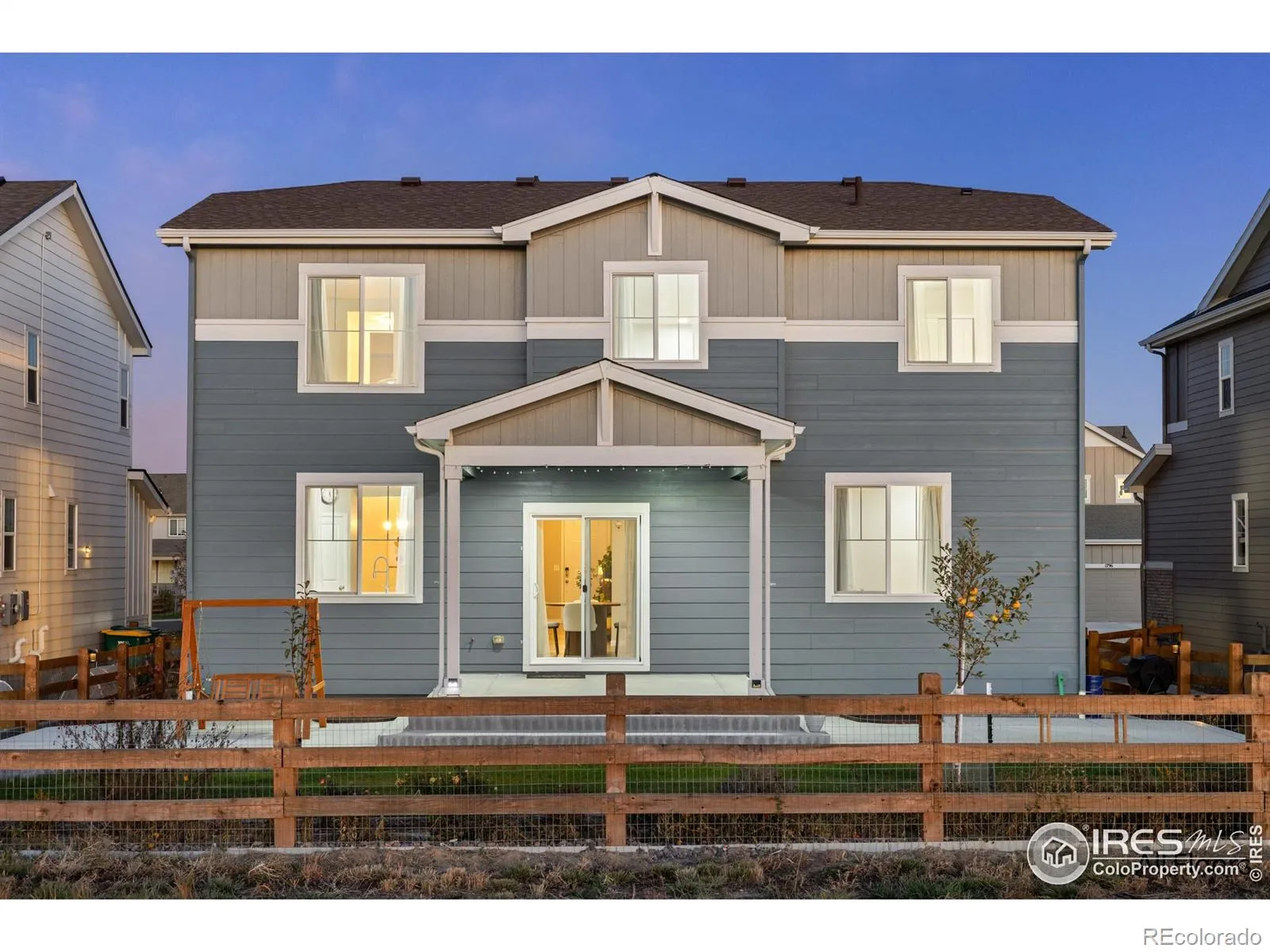 At 1809 Meagan Way, everyday comfort meets trail access mountain views, and open space right in your backyard. Built in 2022, this 4,446 square foot home offers 2,914 finished square feet designed around flexible living. The kitchen, dining, and living areas flow together easily, while a main-level bedroom with a private ensuite bath creates a convenient option for long-term guests or anyone who prefers a room on the main floor. A dedicated home office sits at the front of the home, and an additional flex room adapts as a second office, dining room, or quiet den. Upstairs, a spacious loft adds another relaxed gathering space. Two secondary bedrooms share a full bath with dual sinks, and the nearby laundry room helps streamline daily routines. The unfinished basement expands the possibilities, offering room for storage, future finishing, or hobby space. Step outside to a backyard designed for outdoor living. A large, covered patio looks onto open space and mountain views, and the yard includes fruit trees, garden beds, and established plantings. A natural gas hookup is ready for grilling or a future outdoor kitchen. Morgan Hill offers a welcoming environment with two neighborhood parks, a community pool, upcoming Town of Erie Park access, and miles of walking paths. The neighborhood trail behind the home provides a scenic stroll to the future park and a direct route into Downtown Erie, which sits just 1 mile away. Everyday essentials are also within easy reach, including the Erie Community Center 2 miles away, Erie Elementary and Erie Middle School both 1 mile away, and Erie High School 2 miles away.