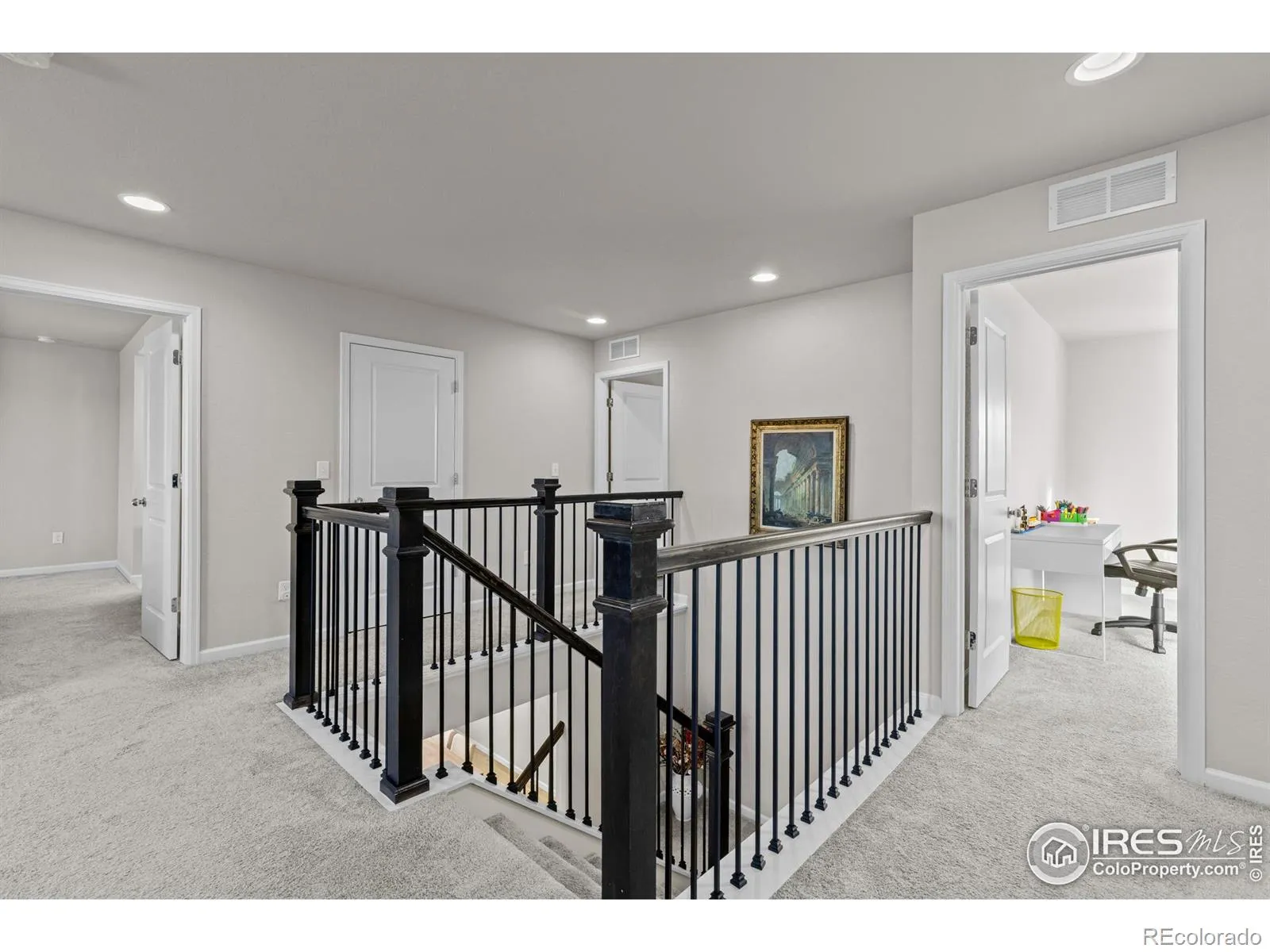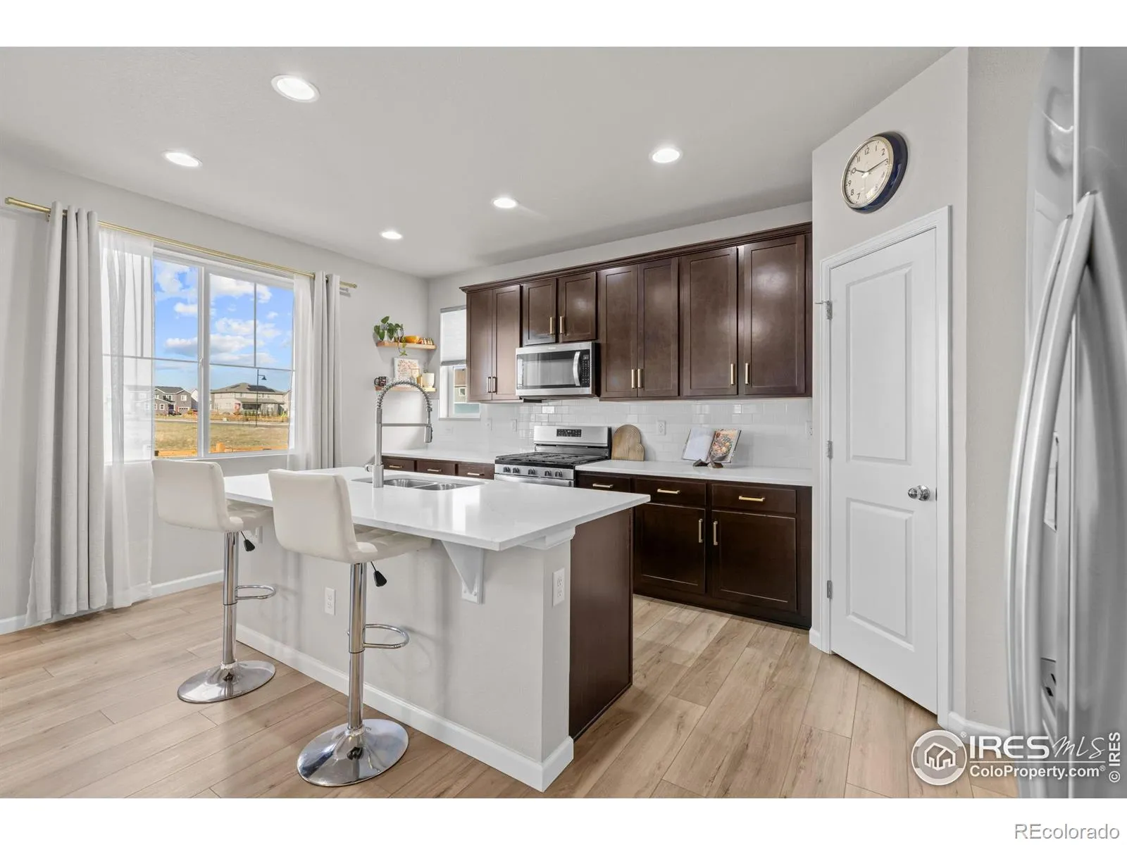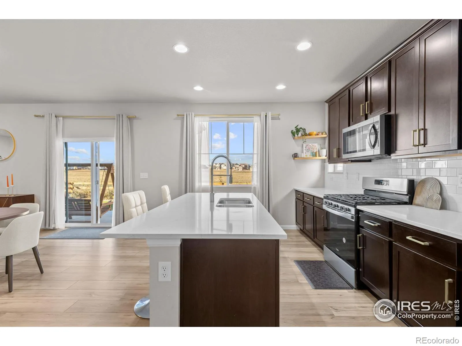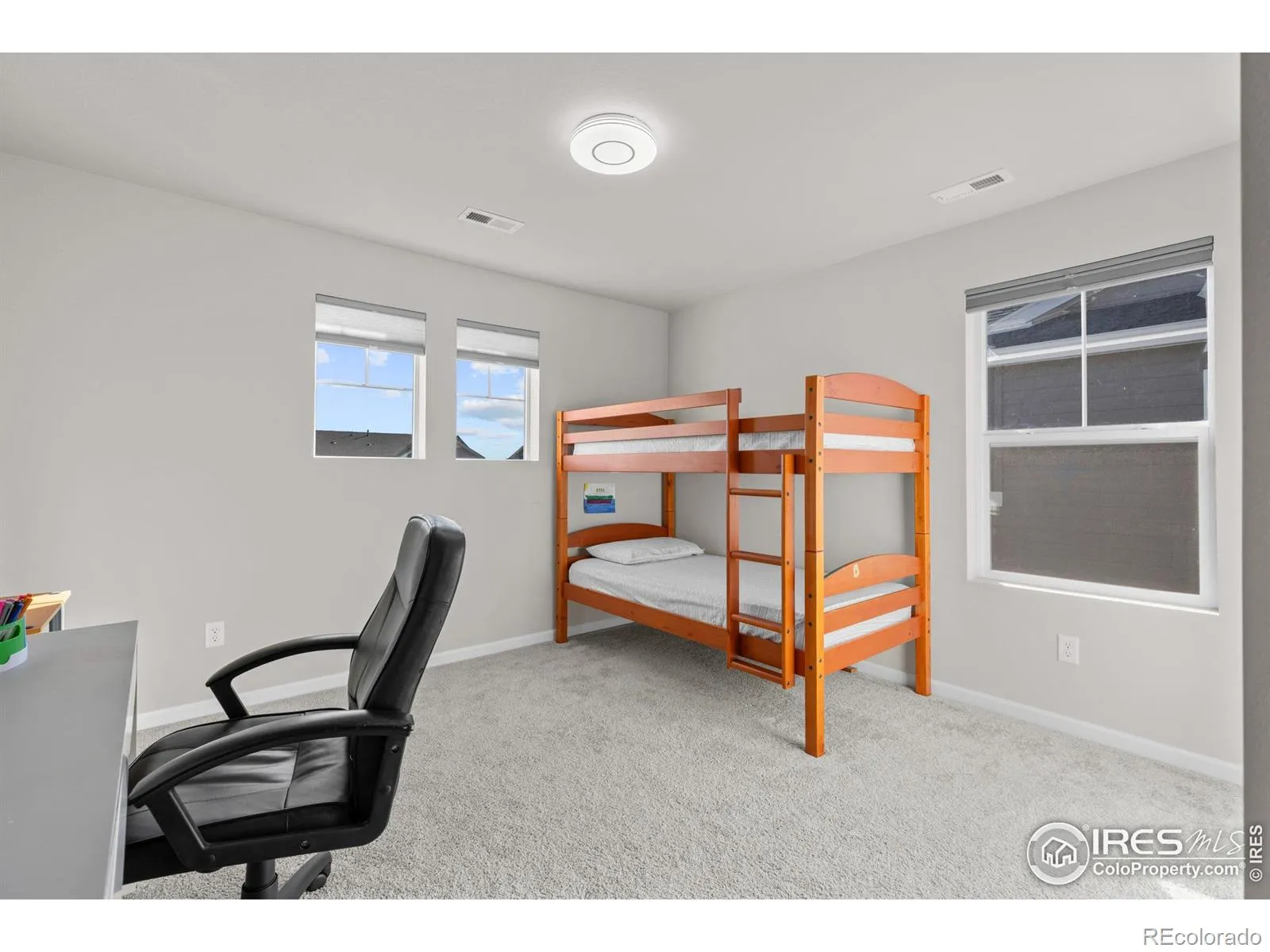 At 1809 Meagan Way, everyday comfort meets trail access mountain views, and open space right in your backyard. Built in 2022, this 4,446 square foot home offers 2,914 finished square feet designed around flexible living. The kitchen, dining, and living areas flow together easily, while a main-level bedroom with a private ensuite bath creates a convenient option for long-term guests or anyone who prefers a room on the main floor. A dedicated home office sits at the front of the home, and an additional flex room adapts as a second office, dining room, or quiet den. Upstairs, a spacious loft adds another relaxed gathering space. Two secondary bedrooms share a full bath with dual sinks, and the nearby laundry room helps streamline daily routines. The unfinished basement expands the possibilities, offering room for storage, future finishing, or hobby space. Step outside to a backyard designed for outdoor living. A large, covered patio looks onto open space and mountain views, and the yard includes fruit trees, garden beds, and established plantings. A natural gas hookup is ready for grilling or a future outdoor kitchen. Morgan Hill offers a welcoming environment with two neighborhood parks, a community pool, upcoming Town of Erie Park access, and miles of walking paths. The neighborhood trail behind the home provides a scenic stroll to the future park and a direct route into Downtown Erie, which sits just 1 mile away. Everyday essentials are also within easy reach, including the Erie Community Center 2 miles away, Erie Elementary and Erie Middle School both 1 mile away, and Erie High School 2 miles away.