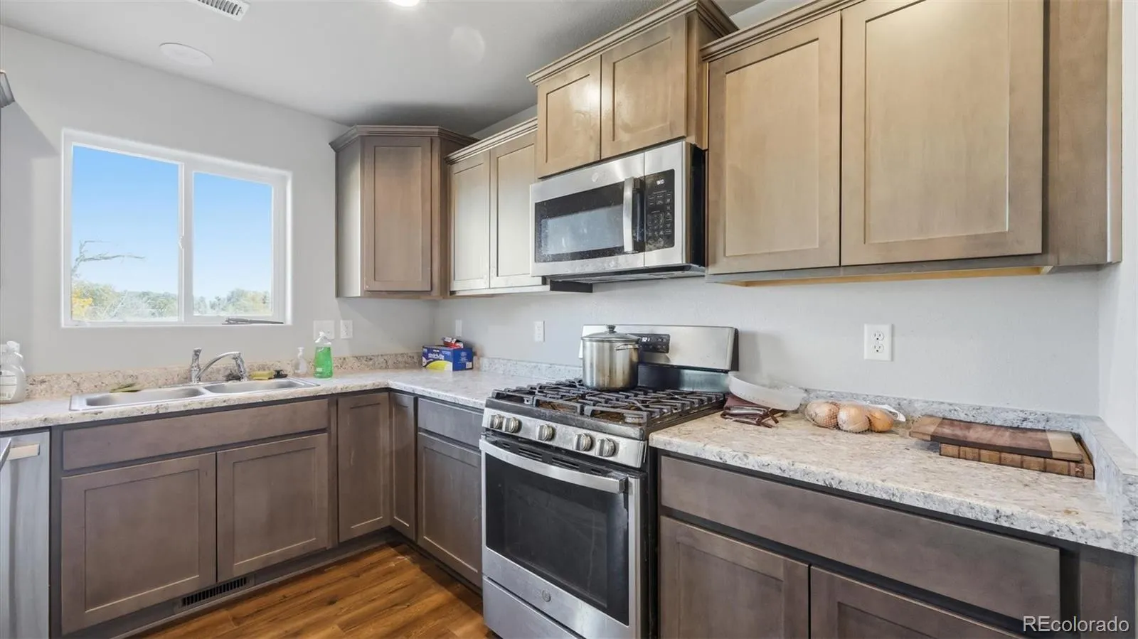 Welcome to the peaceful Fountain community of Ventana & discover this beautiful 3BR, 3BA, Van Buren model by Challenger Homes. This is a well designed 2-story home w/ 2200 sf comfortable & functional living space. Step inside to find an open floor plan enhanced by attractive LVP floors that flow throughout most of the main level. The front & back yards feature low-maintenance xeriscaping, while the rear fence opens directly to scenic trails & open space, perfect for hiking & biking. Off the Entry you’ll find a private office w/ built-in shelving & French doors, an ideal setup for working from home. A convenient Powder Bath is also located near the front of the home. The main level offers a spacious Living Rm, Dining Area, & a modern kitchen, all designed for easy everyday living & entertaining. The Kitchen is a dream for any home chef, complete w/ a gas range, stainless steel appliances, pantry, & a portable island for extra prep space. Upstairs, a large loft provides addtl living space that can be customized to suit your needs, whether that’s a playroom, home theater, or reading nook. Three bedrooms, including the serene Primary Suite, & two Full Bathrooms offer plenty of room for family or guests. The Primary Suite features a luxurious attached bath with a wide vanity, a glass-enclosed shower, & an oversized walk-in closet. A conveniently located Laundry Room w/ washer & dryer adds even more practicality to the upper level. Located just steps from Ventana’s largest park, soccer fields, & a community orchard, you’ll have endless opportunities for outdoor recreation & relaxation. The nearby community center offers even more amenities, including a fitness facility, swimming pool, & hot tub. With easy access to Metcalf Park, Adams Open Space, & a short commute to Fort Carson, Peterson Space Force Base, & Schriever Air Force Base, this home’s location is convenient & inviting. Come see for yourself why this exceptional Ventana home could be the perfect fit for you!