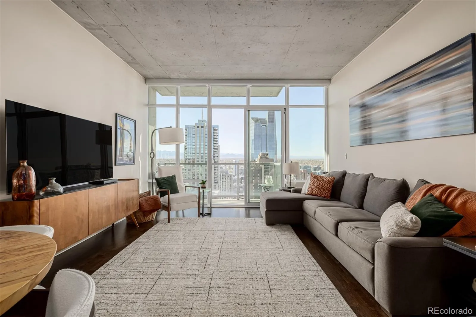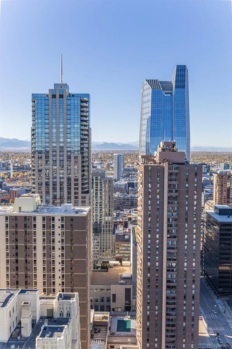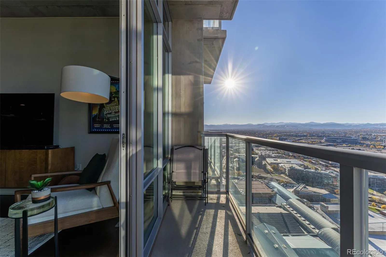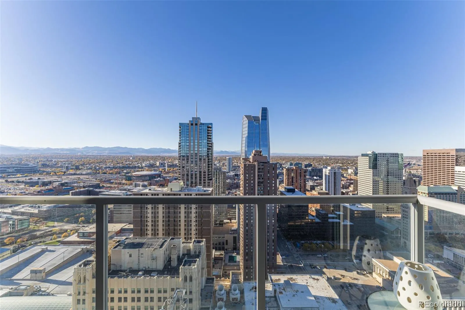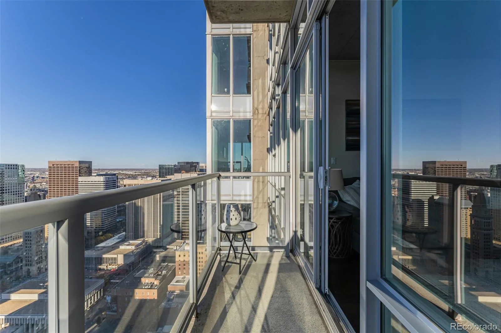 Experience elevated city living in this stunning 1 bedroom/1bathroom condo with incredible skyline views! The welcoming entrance foyer opens to a sophisticated interior featuring high ceilings, engineered hardwood floors, and floor-to-ceiling glass that floods the home with natural light. Enjoy the automatic blinds throughout this stunning residence. The open kitchen is a chef’s delight with custom granite counters, upgraded stainless steel appliances, and a breakfast bar island perfect for casual dining or entertaining. Bright bedroom offers a serene retreat with a walk-in closet, while the bathroom showcases a glass-enclosed tub/shower combo and modern finishes. A stacked washer and dryer adds everyday convenience. The charming balcony is perfect for enjoying fresh air and amazing mountains/city views. This condo also includes a reserved deeded parking space (desirably located on level 2) and access to resort-style amenities such as a pool, hot tub, club room, movie theater and gym. The location is unbeatable! The building sits within walking distance to 16th Street Mall, DCPA, Sculpture Park on Speer and all the amazing restaurants on Larimer Square. One amazing perk of owning this unit – enjoy access to the penthouse SkyClub lounge high atop the 42-story SPIRE.