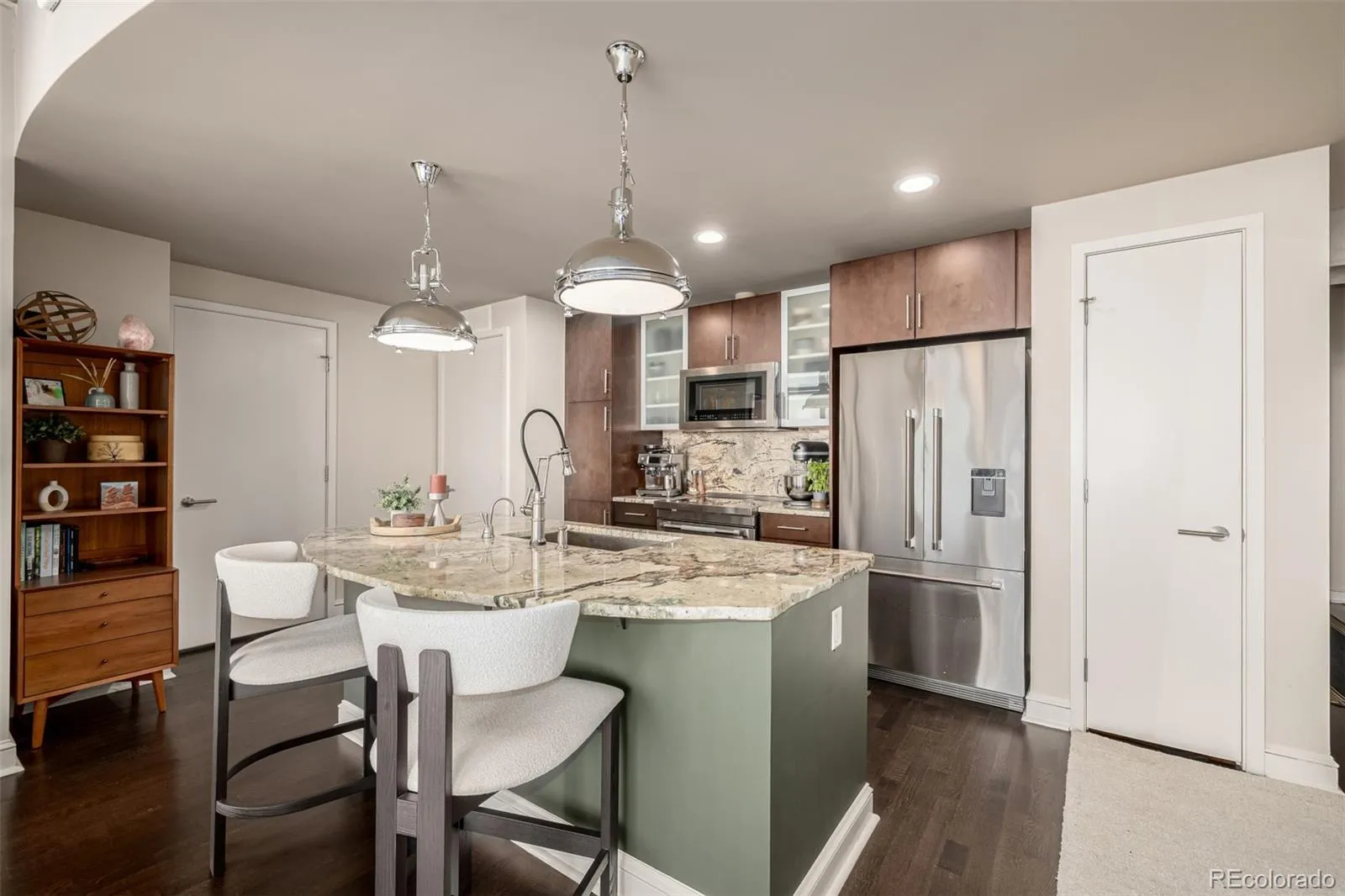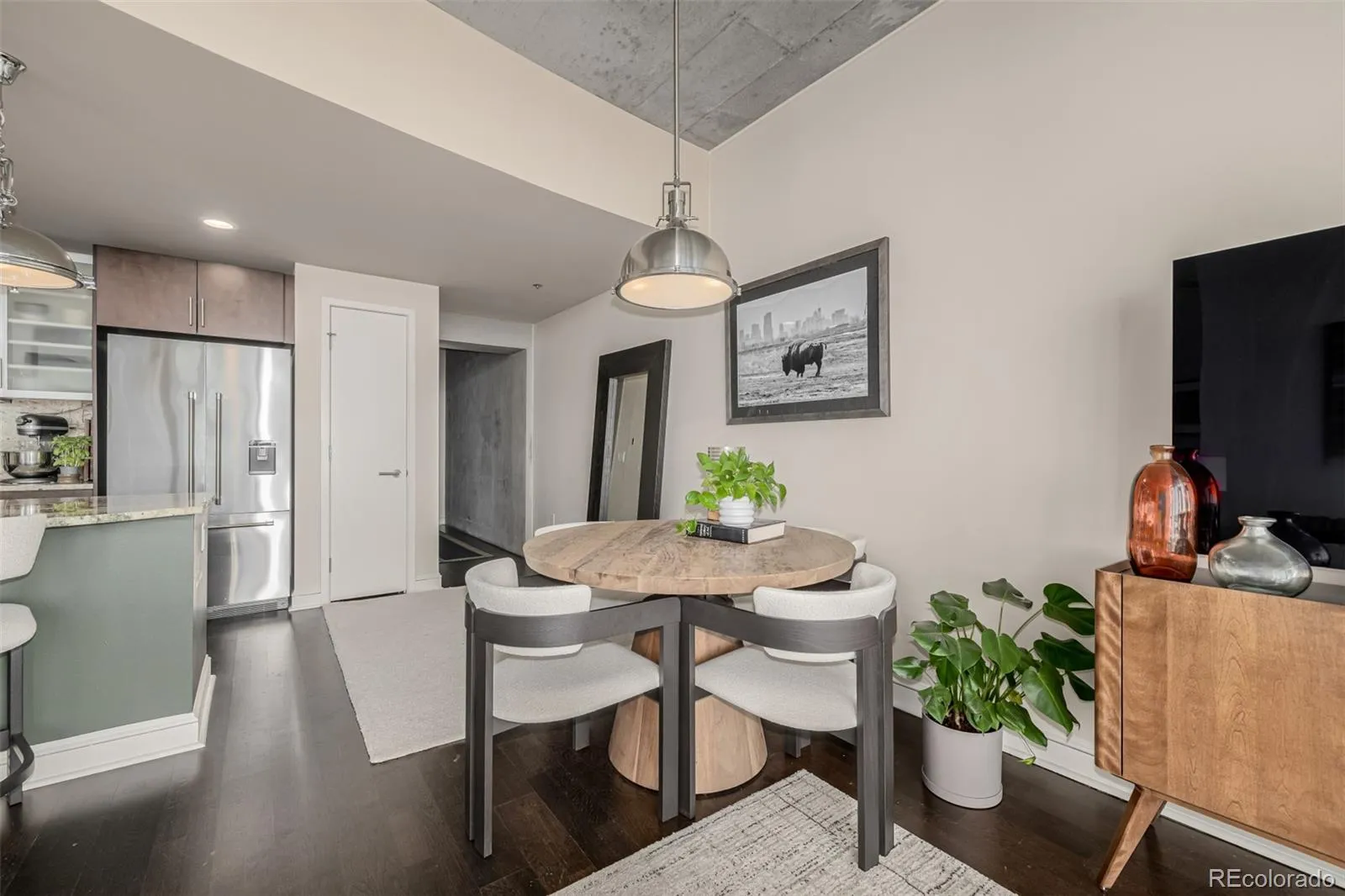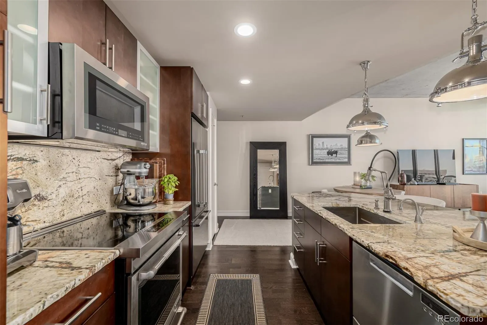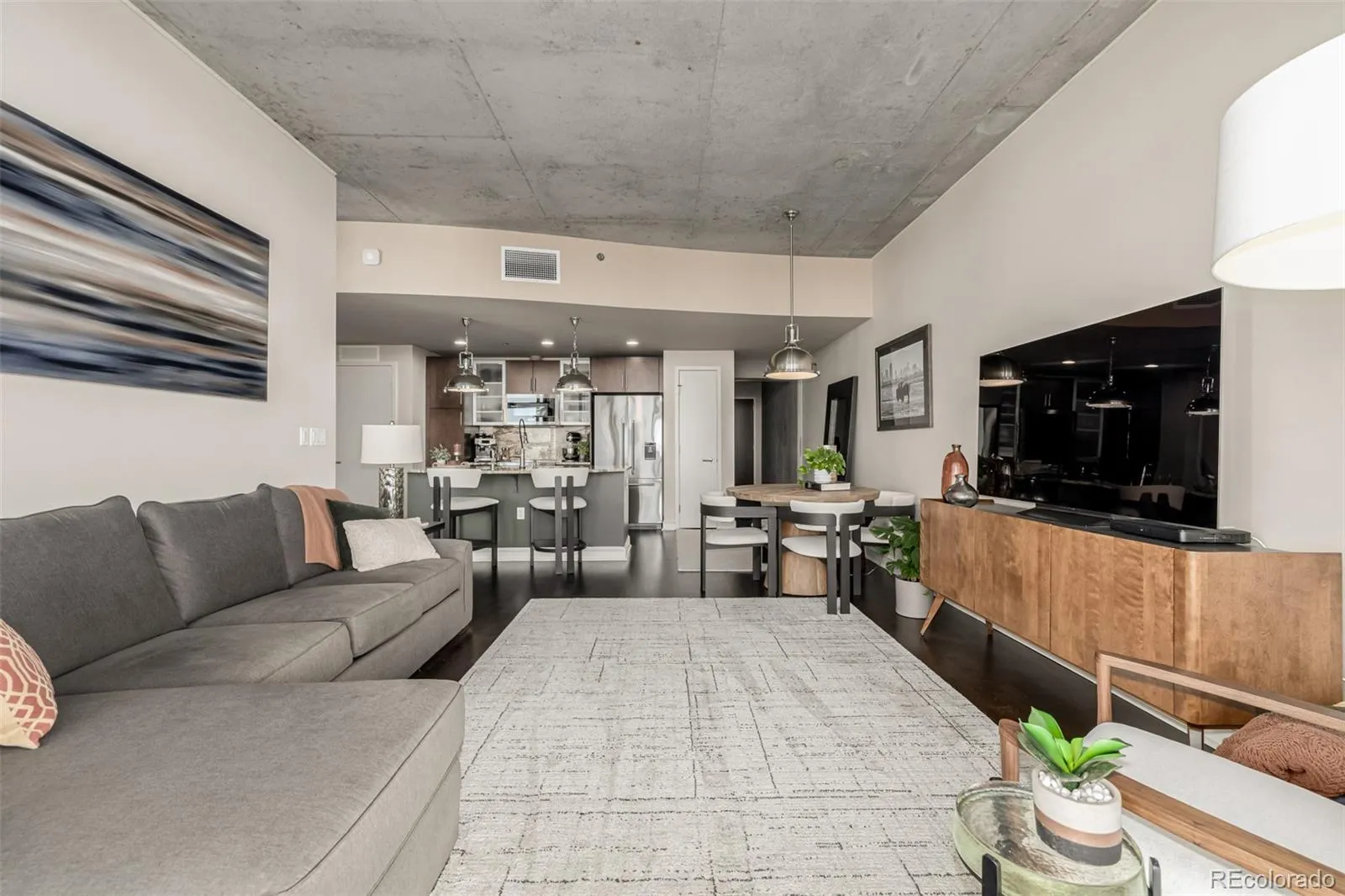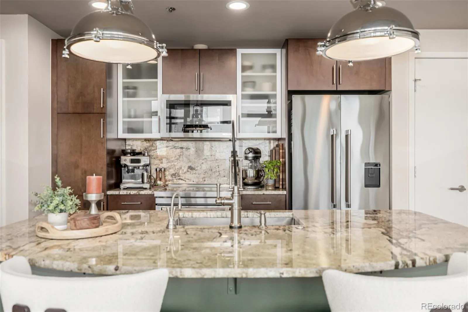 Experience elevated city living in this stunning 1 bedroom/1bathroom condo with incredible skyline views! The welcoming entrance foyer opens to a sophisticated interior featuring high ceilings, engineered hardwood floors, and floor-to-ceiling glass that floods the home with natural light. Enjoy the automatic blinds throughout this stunning residence. The open kitchen is a chef’s delight with custom granite counters, upgraded stainless steel appliances, and a breakfast bar island perfect for casual dining or entertaining. Bright bedroom offers a serene retreat with a walk-in closet, while the bathroom showcases a glass-enclosed tub/shower combo and modern finishes. A stacked washer and dryer adds everyday convenience. The charming balcony is perfect for enjoying fresh air and amazing mountains/city views. This condo also includes a reserved deeded parking space (desirably located on level 2) and access to resort-style amenities such as a pool, hot tub, club room, movie theater and gym. The location is unbeatable! The building sits within walking distance to 16th Street Mall, DCPA, Sculpture Park on Speer and all the amazing restaurants on Larimer Square. One amazing perk of owning this unit – enjoy access to the penthouse SkyClub lounge high atop the 42-story SPIRE.