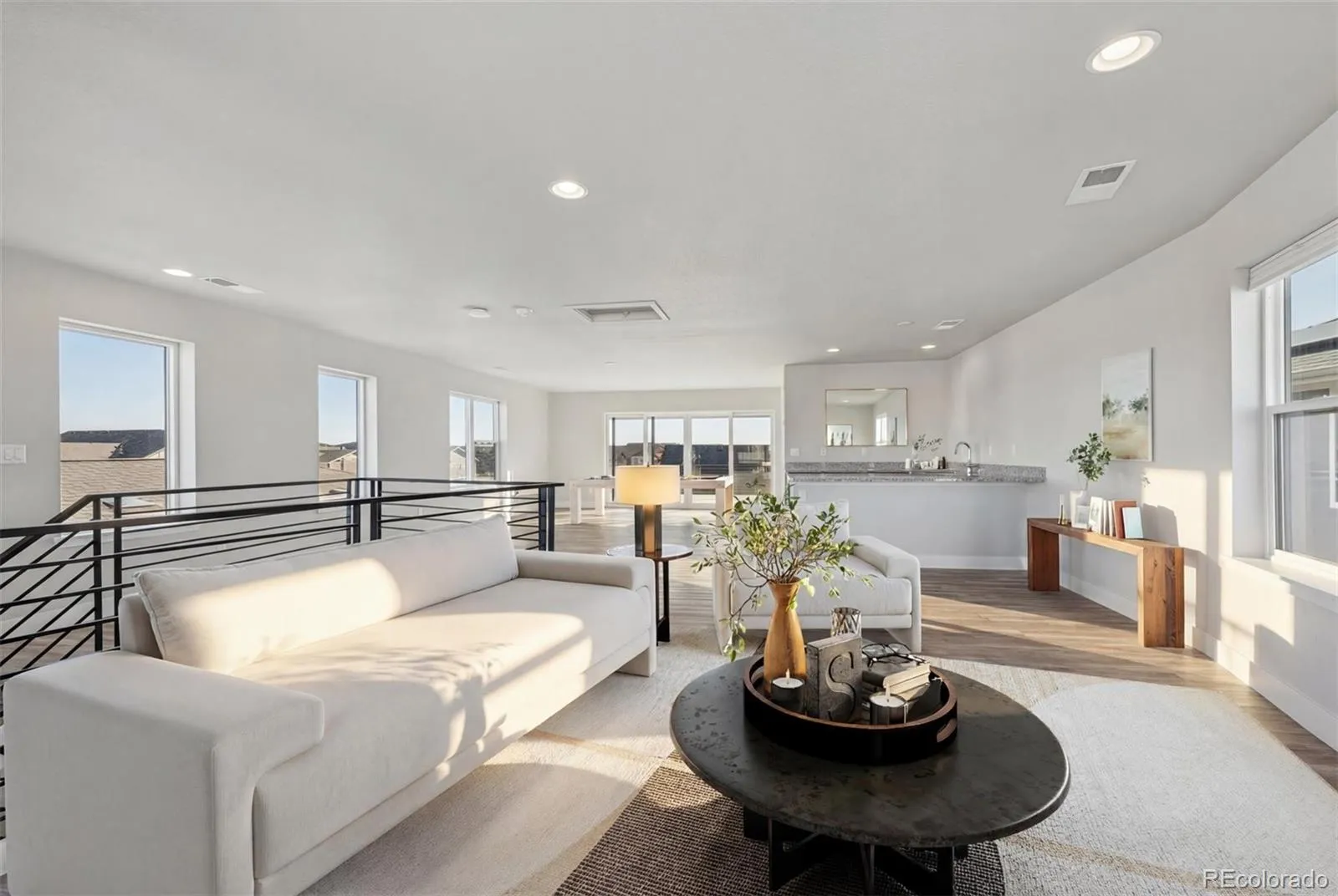 The best-priced three-story home currently available in Painted Prairie for its model, featuring premium upgrades throughout. The main level offers a fully upgraded chef’s kitchen with granite counters, gas range, stainless appliances, and an open-concept layout centered around a large island. Upstairs, the primary suite is spacious and private with its own en suite bath and direct access to a wraparound balcony for true indoor-outdoor living. The third level is truly an entertainer’s dream, with an entire floor dedicated to fun, a wet bar, custom mini fridge, and direct access to a huge, partially covered sky deck with a reverse-osmosis hot tub. The basement is rough-in plumbed and ready for future expansion. Where else can you get unobstructed mountain and city views at this price point in this area? This home delivers lifestyle, luxury, and unmatched value in one!