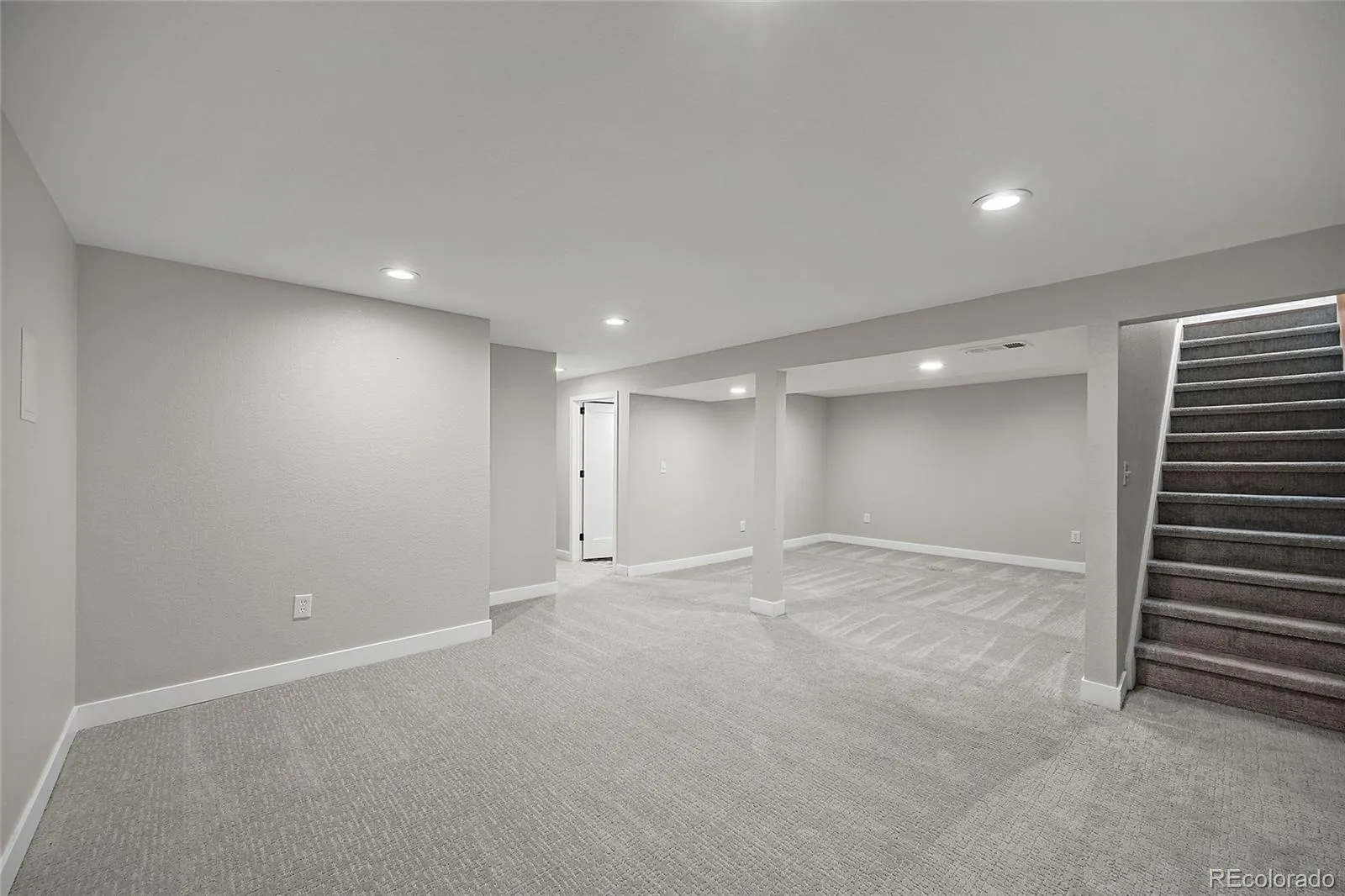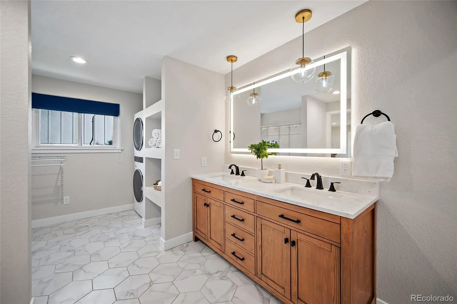 Down the hall, you’ll find a beautifully finished full bathroom, a fantastic secondary bedroom, and a warm primary suite large enough for a sitting area or reading nook by the window. The spa-inspired en suite includes a double vanity with lighted mirrors, an oversized walk-in shower, private water closet, and a convenient full-size laundry area.