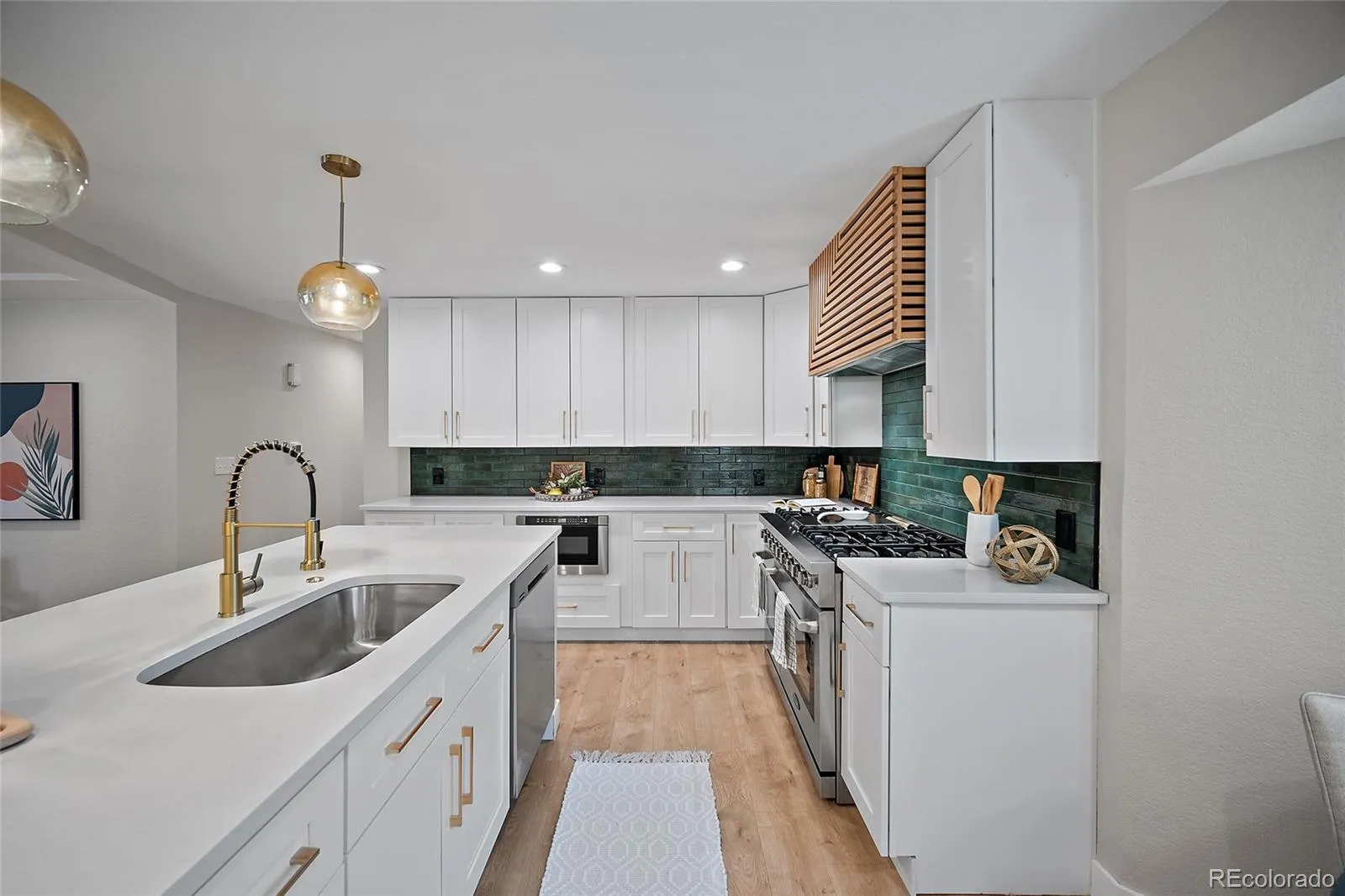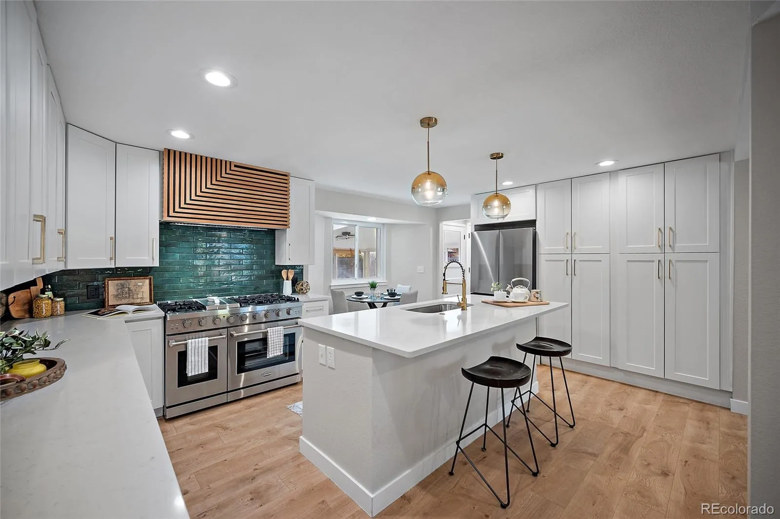 Welcome to your dreamy ranch-style retreat in Pinecrest Village where timeless charm meets elevated modern living. Step inside to a beautifully reimagined open-concept layout that blends comfort, sophistication, and everyday functionality. A custom-tiled fireplace wall anchors the living room with designer flair, while the chef-inspired kitchen is truly the heart of the home. Featuring a 48” double oven, custom range hood, drawer microwave, stainless refrigerator with built-in water pitcher, and abundant cabinetry, this space is perfect for both gourmet cooking and casual gatherings.