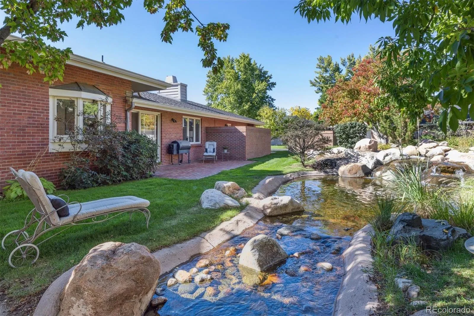 Welcome to serene and private waterfront living in the heart of Cherry Creek. This beautifully remodeled ranch-style home offers one of the most desirable floor plans and locations in Polo Club North, perfectly positioned along the community’s tranquil pond, stream, and cascading waterfalls. Two private patios invite you to unwind to the soothing sounds of water—ideal for morning coffee or evening entertaining. Inside, the home blends sophisticated style and everyday comfort with an abundance of natural light, expansive windows, a large skylight, and gleaming hardwood floors. Every detail has been thoughtfully updated with quality craftsmanship throughout. The inviting open kitchen is designed for both cooking and connection, seamlessly flowing into the family room with a cozy gas fireplace and the spacious formal dining room. Just off the kitchen, a private patio offers a peaceful spot to enjoy the gentle sound of the waterfall. The main level features two inviting bedrooms and two elegantly renovated baths, offering easy single-level living. The formal living room opens to a spacious back patio with one of Polo Club North’s most exceptional water views, creating a stunning indoor-outdoor connection. Downstairs, the finished basement offers remarkable versatility—a large den, a private guest suite with a full en-suite bath, and generous storage. Polo Club North is a gated community with 24-hour security and exceptional HOA services, including lawn care, snow removal, and exterior maintenance—ideal for a true lock-and-leave lifestyle. Just minutes from Cherry Creek’s premier shopping and dining, this residence offers the perfect blend of luxury, privacy, and convenience, all in a rare waterfront setting in the heart of Denver.