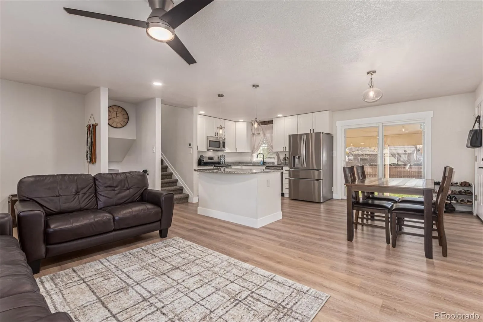 Fabulous 3-level home showcasing timeless style & comfortable living! The inviting exterior features a grassy front yard, brick-accented façade, & a 2-car garage for curb appeal. Inside, you’ll find open common areas enhanced by wood-look flooring, neutral paint tones, & a warm, welcoming ambiance throughout. Relax in the downstairs family room, highlighted by a brick-accented wood-burning fireplace, perfect for cozy gatherings! The modern kitchen is a delight, complete with SS appliances, granite counters, an island with pendant lighting & breakfast bar, and crisp white cabinets offering ample storage. Upstairs, the main bedroom provides a peaceful retreat with a spacious closet & a stylish bathroom featuring a tiled, glass-enclosed shower. All bedrooms are comfortably carpeted! The finished basement expands your living options—ideal for a game room, office, or media space. Enjoy outdoor living in the private backyard, boasting a covered patio, storage shed, lush green lawn, & mature shade trees that provide a serene setting. This home truly has it all!