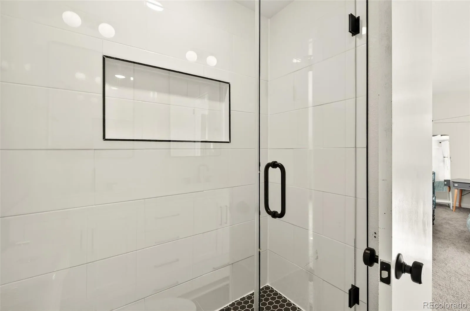 Down the hall, you’ll find two bedrooms and a large, fully updated bathroom showcasing designer tile, new fixtures, and a modern vanity.