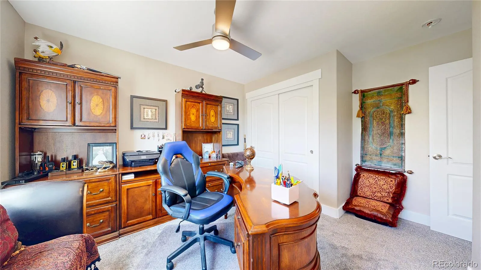 Welcome to this beautiful and well-maintained 4-bedroom, 3-bathroom home. When you arrive you will notice the great curb appeal and stucco exterior. As you enter the home you will be greeted by an inviting sitting room/office space, perfect for greeting guests or working from home. The main living area features an open layout, newer baseboards, and soaring high ceilings offering plenty of natural light, creating a warm and welcoming atmosphere. The main level includes a spacious living room, a kitchen perfect for cooking and entertaining, and a convenient half bath for guests.