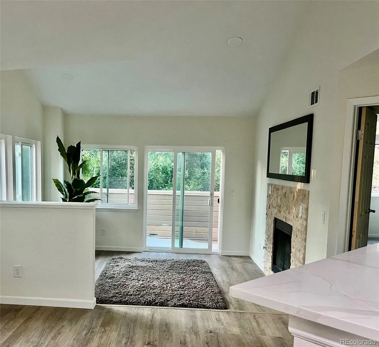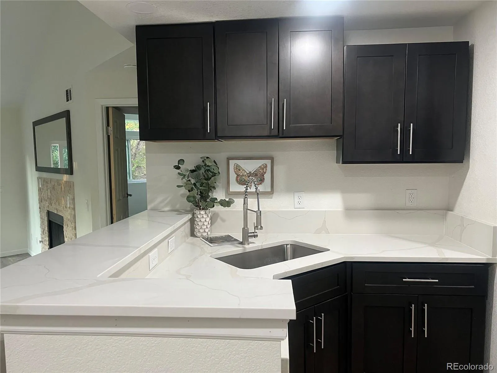 Nicest 1 bedroom condo I’ve seen with great location in DTC! Super remodel, new flooring texturing and repainting the interior. (REMOVED POPCORN CEILINGS) added lots of can lighting throughout, updated gas fireplace. This home has beautiful remodeled kitchen with new cabinets, quartz counters, all appliances including washer & dryer. You’ll enjoy the eating area off kitchen or makes for a fun office area as well. We have a spacious primary suite with new carpet and great views of the beautiful foliage. Walk down interior stairs to an attached garage with opener and plenty of owner/guest parking behind & outside the gated community.
