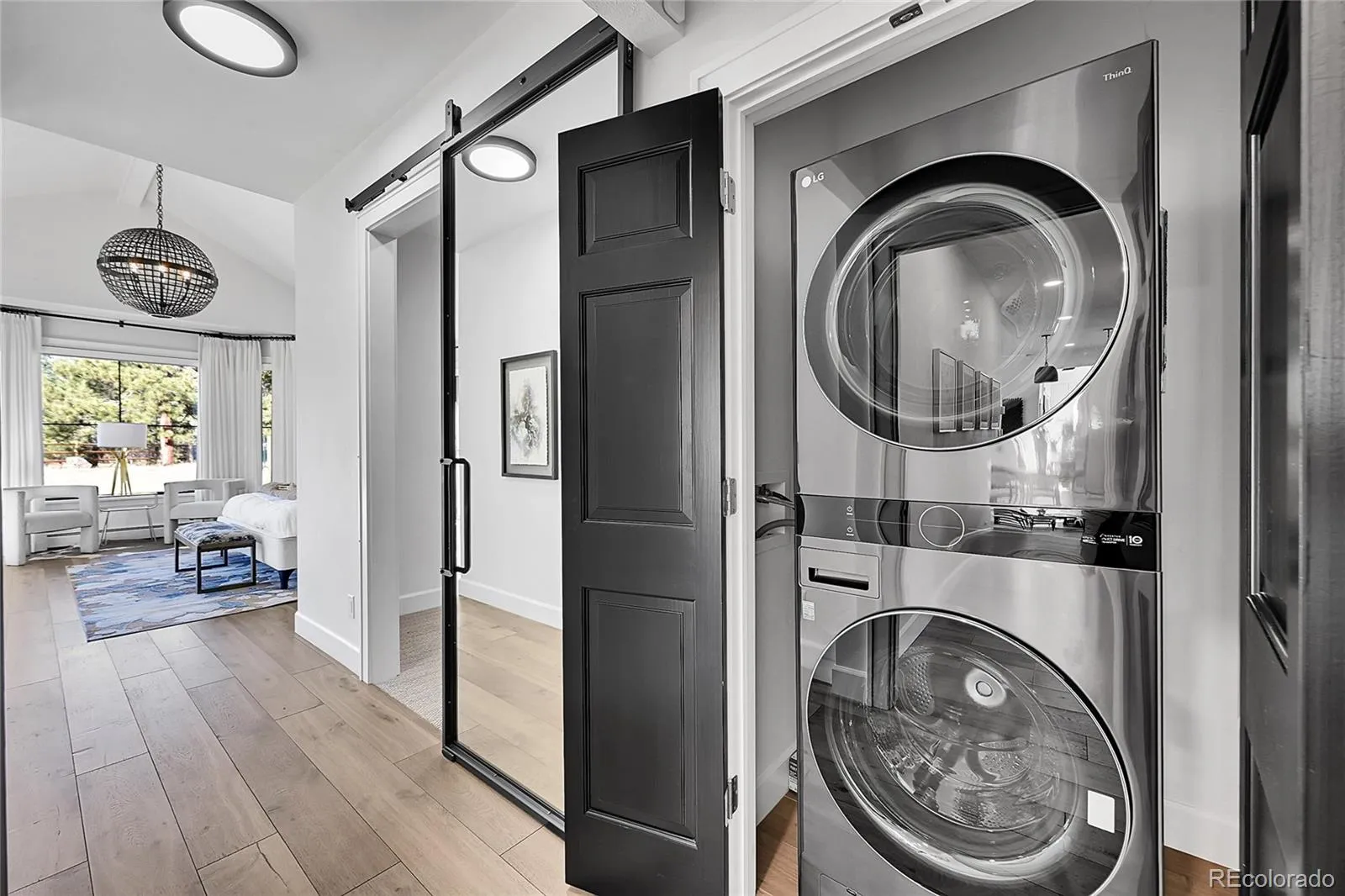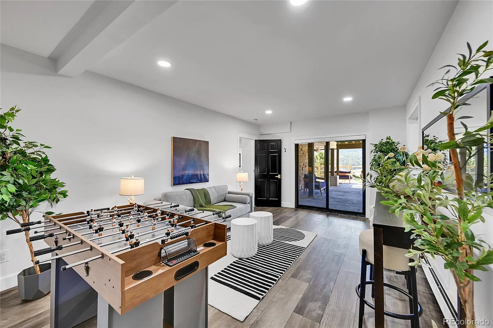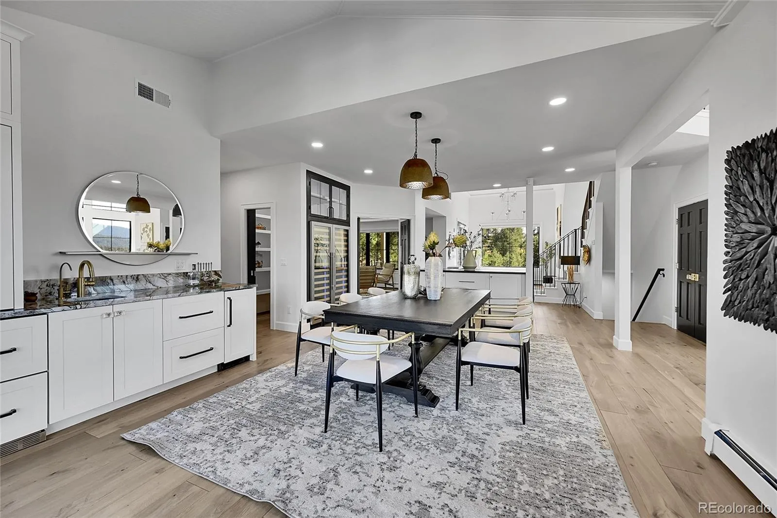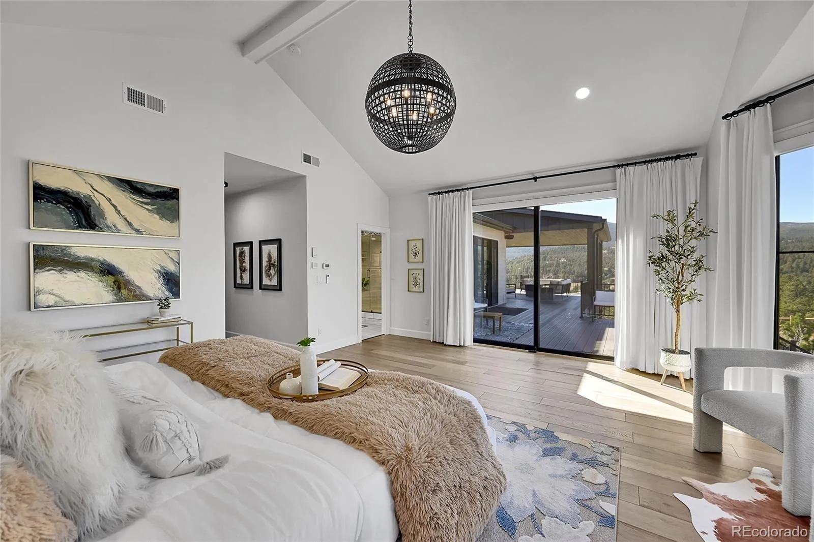 Where design meets serenity, this extraordinary contemporary home rises above the ordinary. Rebuilt & reimagined in 2022 as a designer’s personal sanctuary, every detail reflects beauty, intention, & ease of living. Step inside to sweeping views & light-filled, airy interior. The showpiece kitchen is a masterpiece —Thermador appliances, endless counter space, and a flow that invites connection.The dining area, complete with a 308-bottle wine fridge & wet bar, was made for evenings that linger long after the last toast. The living room’s sleek new fireplace glows with warmth and style, while the main-level primary suite offers calm luxury: steam shower, heated floors, private laundry. Upstairs are two spacious bedrooms, a large bath, family room, & wet bar. Downstairs, a private walkout suite for guests or business, with two flex spaces opening to the lower deck, complete with a steaming hot tub with incredible mountain views. Every system was redone in 2022—septic, roof, boiler, AC, water filtration, electrical, siding, insulation, & more. The home was recently further elevated with extensive luxury, energy & technology upgrades, including smart home features, a full solar panel array with Powerwalls so the home never loses power during an outage, motorized shades, & full security system. The original 1962 build is nowhere to be found in this completely rebuilt home! A 200 sq ft storage building added in 2024 and custom fencing enhances functionality. The flat, usable land is ideal for horses or an ADU. Outside, relax beside the fire pit, or watch the seasons shift across the mountains from your choice of decks. Though it feels worlds away, the location is very convenient. Just 3 minutes to Evergreen’s charming shops, trails, rec center & art center—only 6 minutes to I-70 for quick trips to Denver, DIA, or the slopes. Make this your new home, where modern design meets mountain soul! Video, 3D walk-thru and more photos at www.1128CountyRoad65.com