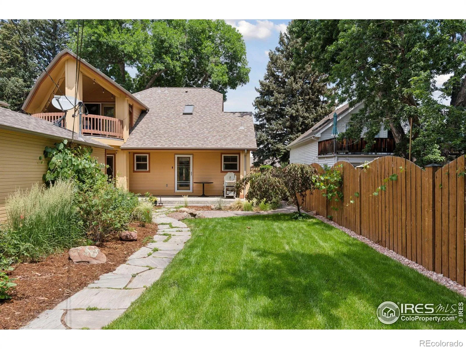 Charming lower Chautauqua 2-story craftsman-style bungalow with beautiful landscaping and a nice fenced backyard. Just down the road from Chautauqua Park and close to the University of Colorado campus. Thoughtful and creative architecture seamlessly blends the original 1950 bungalow with the delightful 2-story addition completed in 2000. 3 main floor bedrooms. Spacious rear patio is covered, and the upper deck above is also covered with private access off the primary suite. The comfortable media room in the basement offers entertainment/library built-ins and a wonderful queen-size Murphy bed for a 5th bedroom with a private 3/4 bath for your out-of-town guests. Pathways of beautiful Cathedral gray slate lead to the front entry and meander throughout the outdoor areas. The detached single-car garage and additional parking pad are accessed from the lush rear alleyway. No projects to undertake here – this home is perfect as is and ready to move into now!!