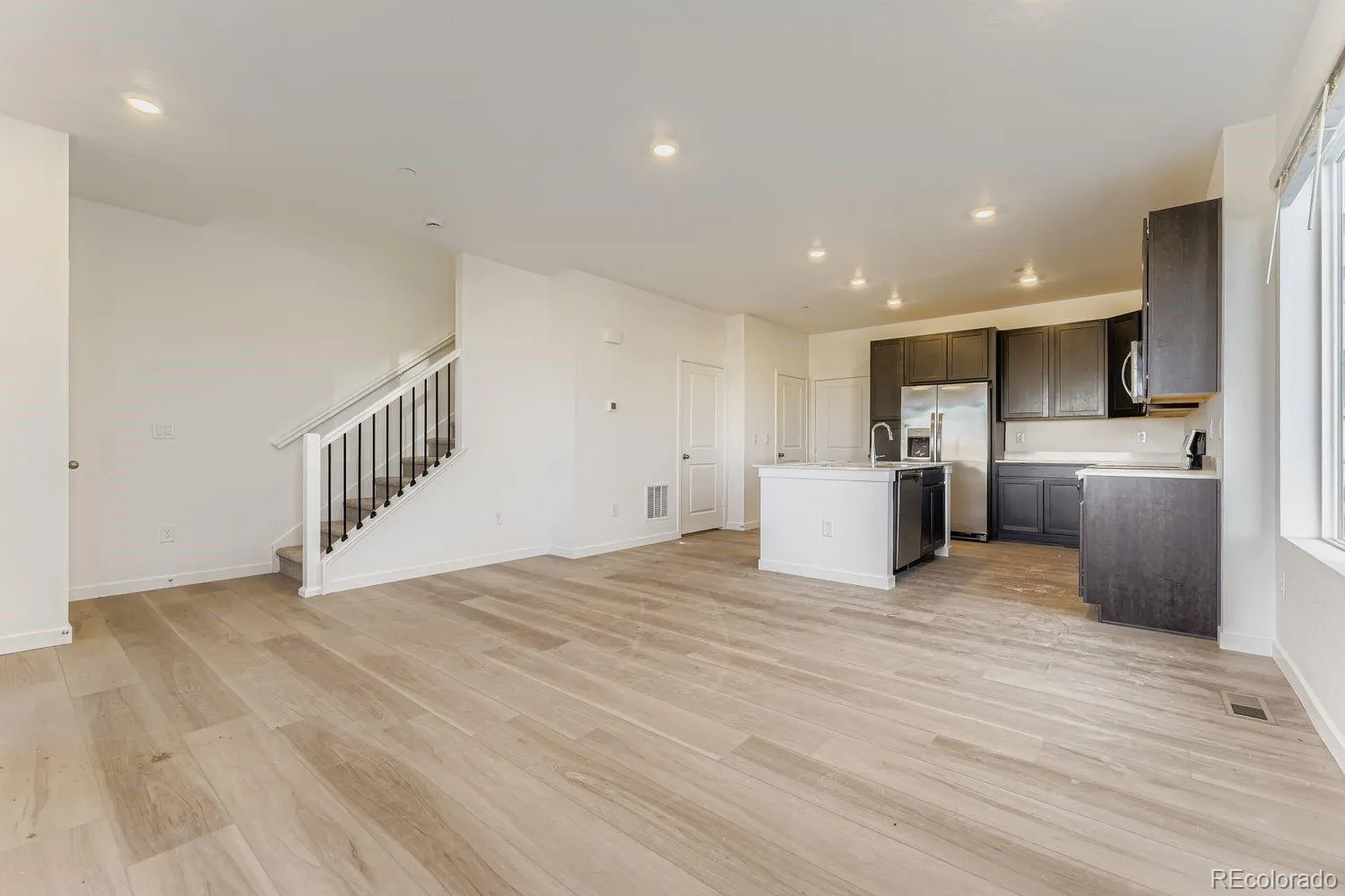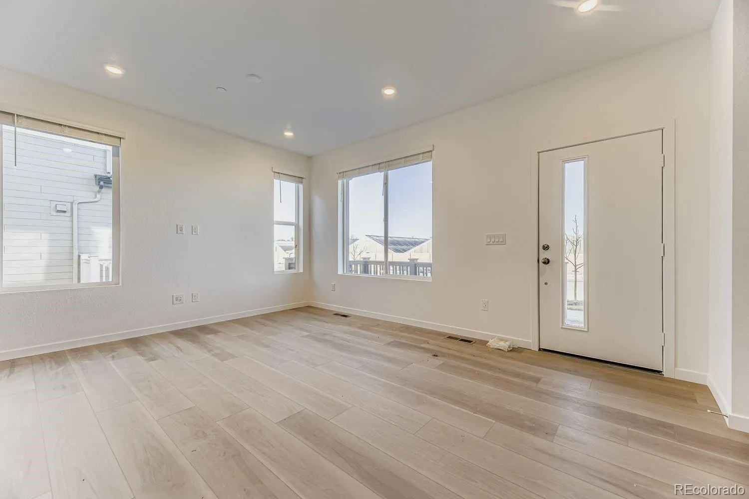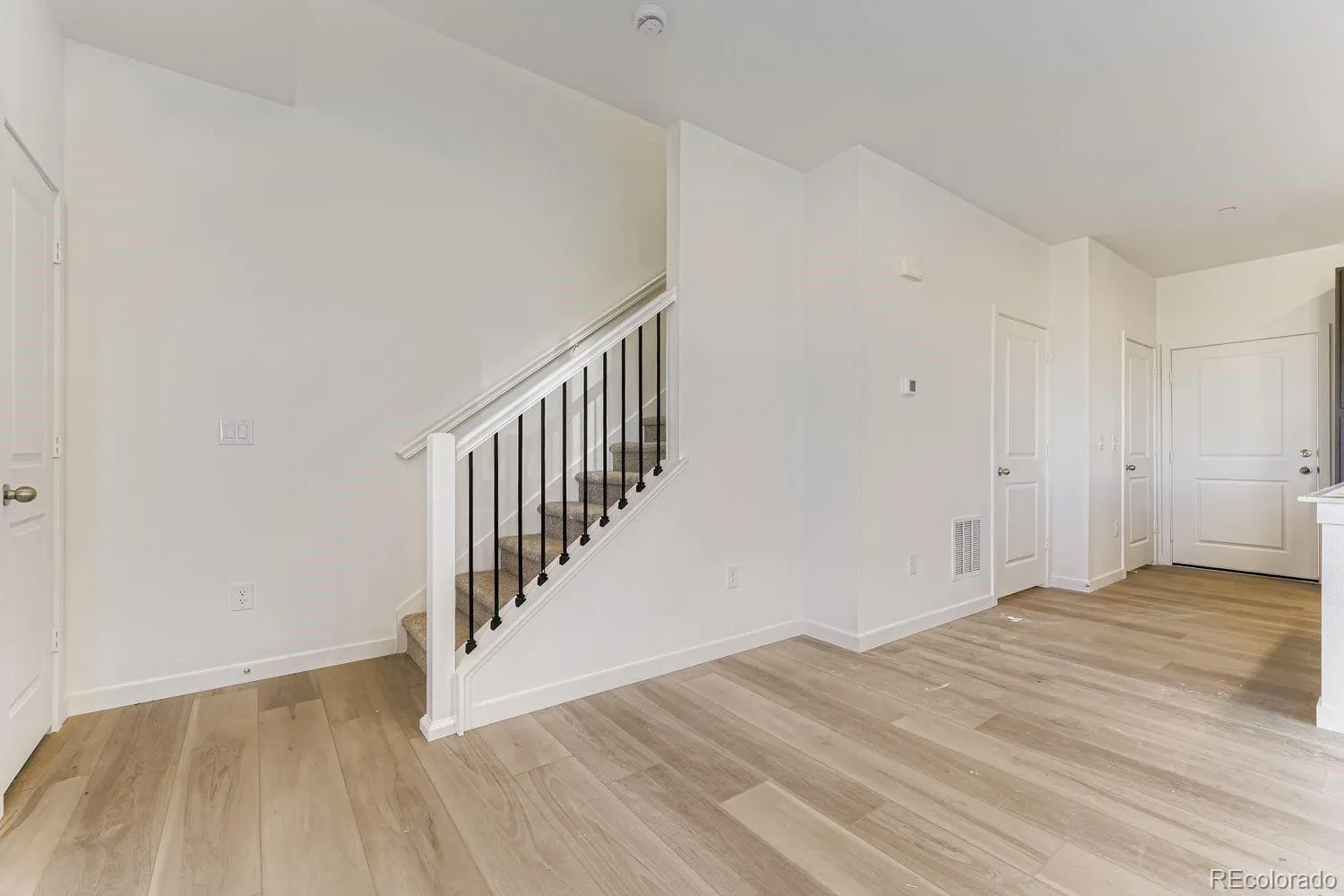 This brand new 2-story end unit townhome in a 6-plex is a prime end location with light & privacy and features 3 bedrooms, 2.5 baths, great room, kitchen, upper laundry, 2 car attached garage (rear alley entry) and conditioned crawl space. Gorgeous finishes and upgrades throughout including luxury vinyl plank flooring, stainless steel appliances, slab quartz counters, solar and more. The builder provides the latest in energy efficiency and state of the art technology with several fabulous floorplans to choose from. Energy efficiency, and technology/connectivity seamlessly blended with luxury to make your new house a home. Vermilion offers several fabulous plans to choose from. Photos are model only and subject to change. Association fees are subject to change. Enjoy easy access to Tagawa Gardens and the Cherry Creek Trails right outside your neighborhood. Washer, dryer and whole home blinds included with this home.
