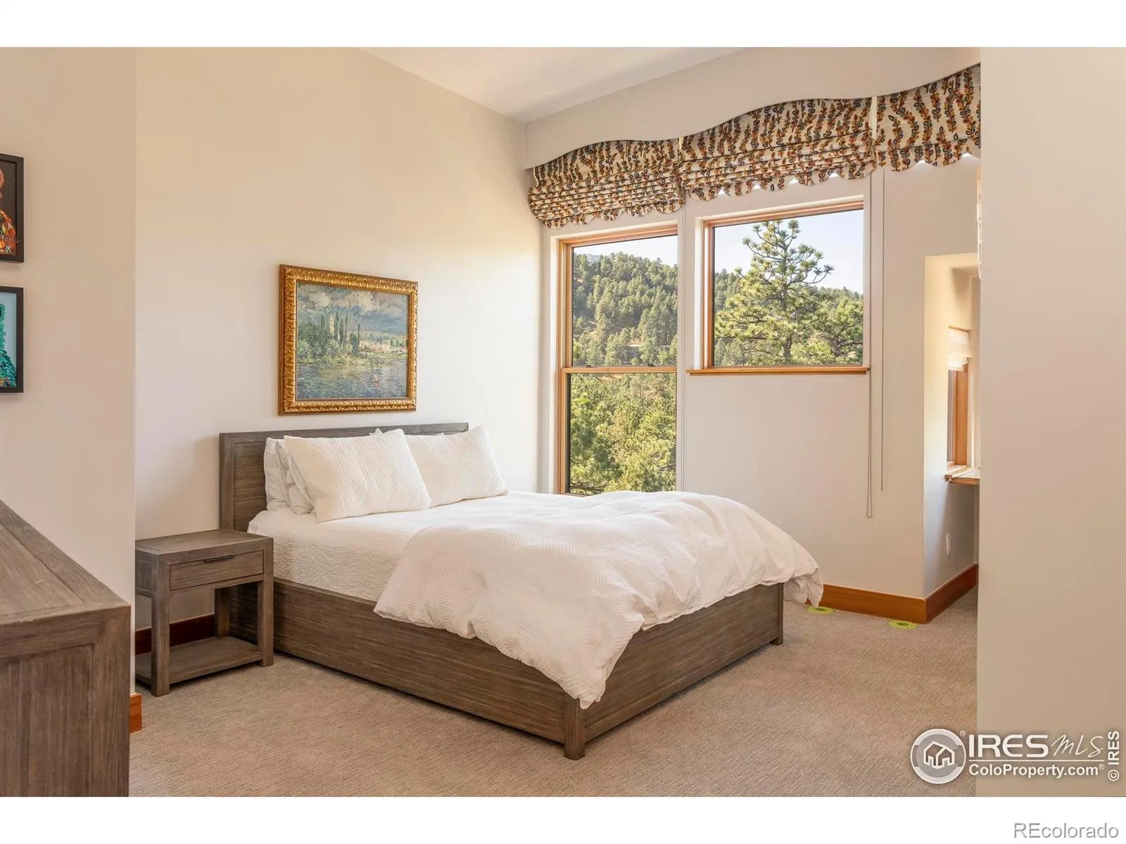 Architectural Masterpiece in Pine Brook Hills. Perched atop Boulder’s exclusive Pine Brook Hills, this striking Oz Architecture residence captures sweeping views of the Continental Divide and city lights from every room. A rare blend of bold design and refined comfort, the home is framed by exquisite landscaping with water features cascading into a serene saline pool and spa-creating a private sanctuary just 10 minutes from Pearl Street. Inside, the drama unfolds with soaring ceilings, walls of glass, and motorized blinds that frame panoramic mountain vistas. The living room centers around a modern fireplace, while the dining room-with its own wood-burning hearth and accordion doors-effortlessly opens to the outdoors. The gourmet kitchen features premium appliances, a built-in breakfast nook, and custom cabinetry. Hidden details add delight: barn doors reveal a cozy media room, and a secret bookcase door leads to a secluded home office with bespoke built-ins. Upstairs, dual primary suites offer retreat-like comfort-one with a gas fireplace, jetted soaking tub, and custom walk-in closet; the other with a steam shower and endless views. Two additional bedrooms share a Jack-and-Jill bath and feature playful loft spaces perfect for guests or creative escapes. The newly remolded lower level impresses with all-new wide-plank oak flooring, radiant heat, and a 3.5 car garage with built-ins. Thoughtful details include a dog run, generator, solar panels to offset electric costs, and a low-maintenance landscape with drip irrigation. Originally designed with a climbing wall at the entry, this home reflects both artistry and adventure, an architectural gem that redefines modern mountain living.