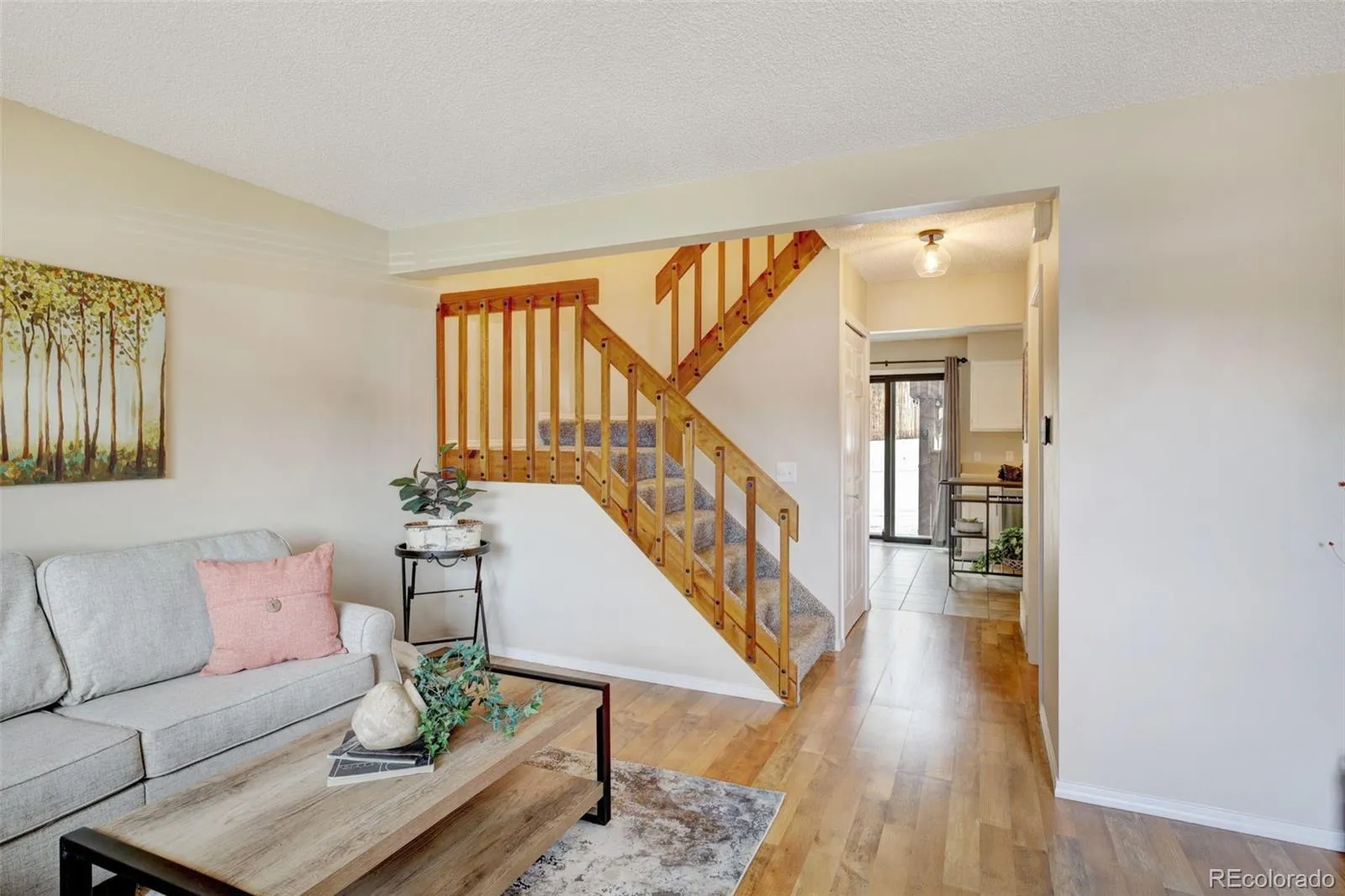 This beautifully updated 2-story townhouse offers modern comfort and timeless charm. Recently refreshed throughout, the home features new carpet, interior paint, stainless steel appliances, light fixtures, and doors. The open and functional floor plan includes spacious living areas and a dining space that flows naturally for everyday living. Energy-efficient double-pane Andersen windows and sliding glass doors provide excellent insulation and sound reduction. Hardwood flooring and a calm, neutral color palette enhance the bright and welcoming interior. Enjoy mountain and Pikes Peak views from the front of the home and a private rear deck perfect for relaxation. The property includes two reserved parking spaces in the rear and additional guest parking available in front. Conveniently located near the Powers corridor, with easy access to shopping, dining, parks, and community amenities, this updated townhouse combines comfort, style, and practicality in a desirable setting.