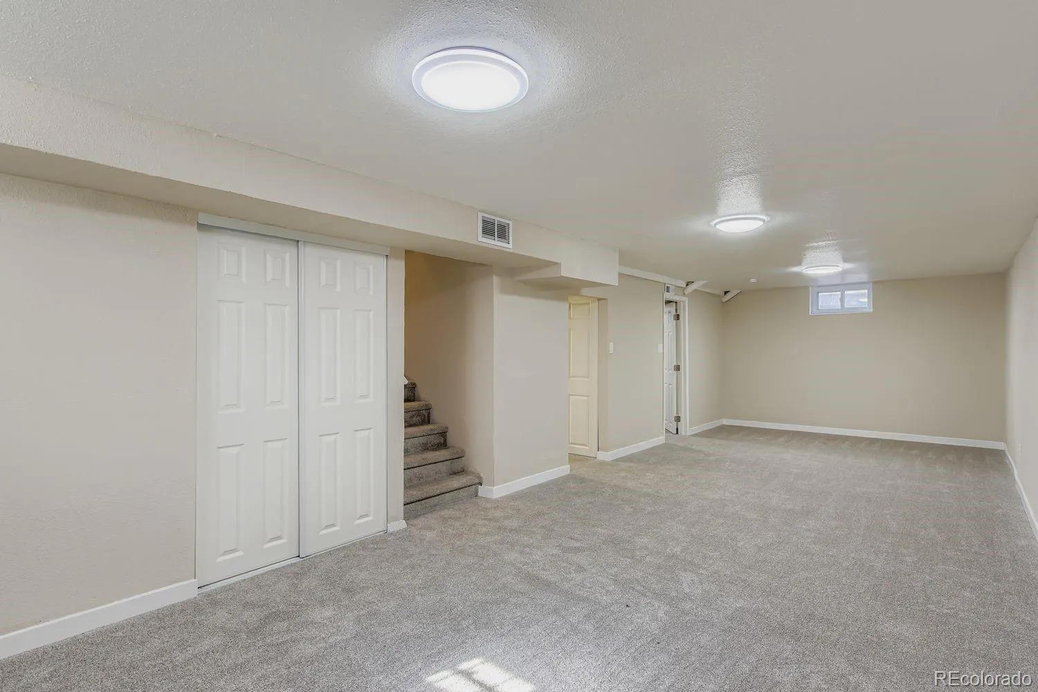 Welcome to this charming updated Park Hill ranch home with modern comfort! Featuring 1,736 finished square feet, this spacious 4-bedroom, 2-bath residence offers a light-filled open layout and thoughtful updates throughout. The main level showcases gleaming floors, a bright living room with lots of natural light, a stylish eat-in kitchen, and two well-appointed bedrooms with a full bath. The finished basement provides incredible flexibility with a large family/game room, non-conforming bedroom, ¾ bath with shower, oversized laundry area, and extra storage space perfect for guests, hobbies, or a home office. Enjoy peace of mind with updated double-pane windows, central air, and forced-air heating for year-round comfort.Outdoors, the home sits on a 6,250 sq ft lot with a fully fenced yard, lush green lawn, and private patio which is ideal for entertaining or relaxing. The off-street parking for two cars, updated exterior, and welcoming front porch add to the curb appeal.