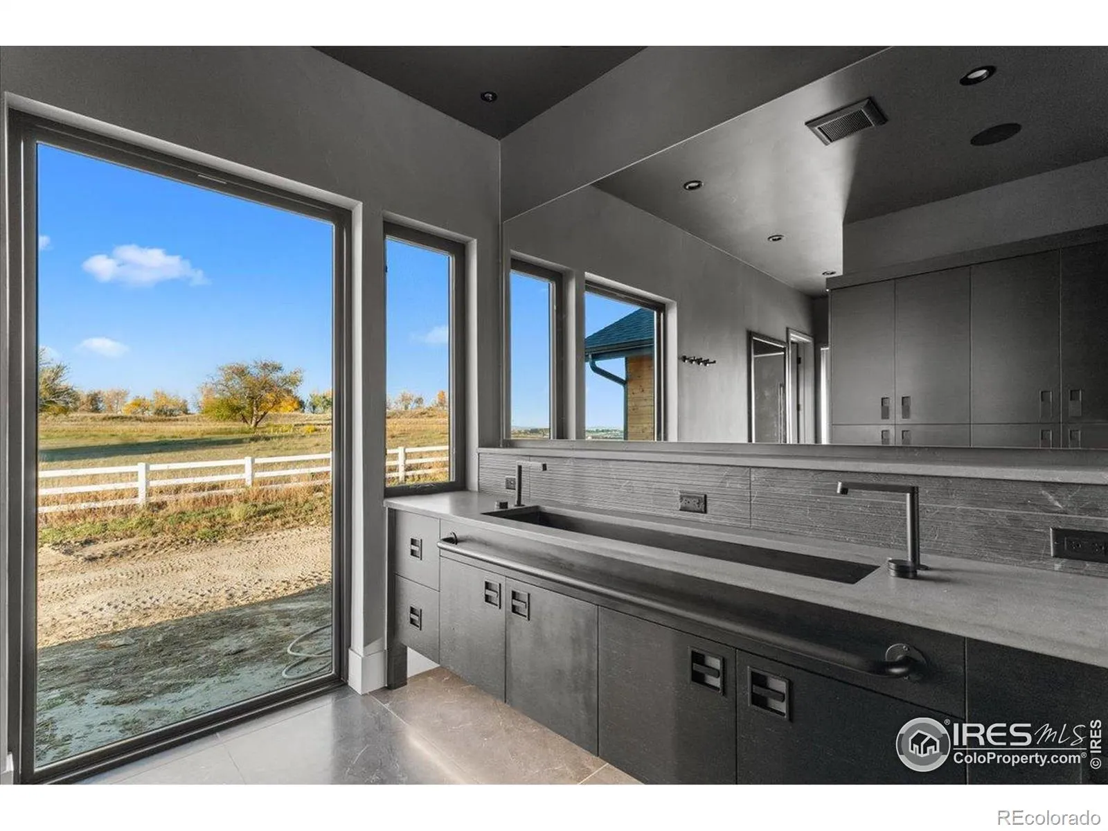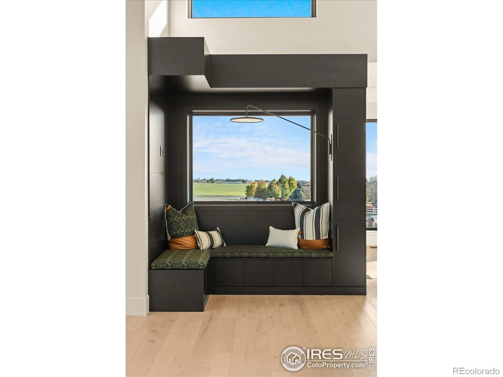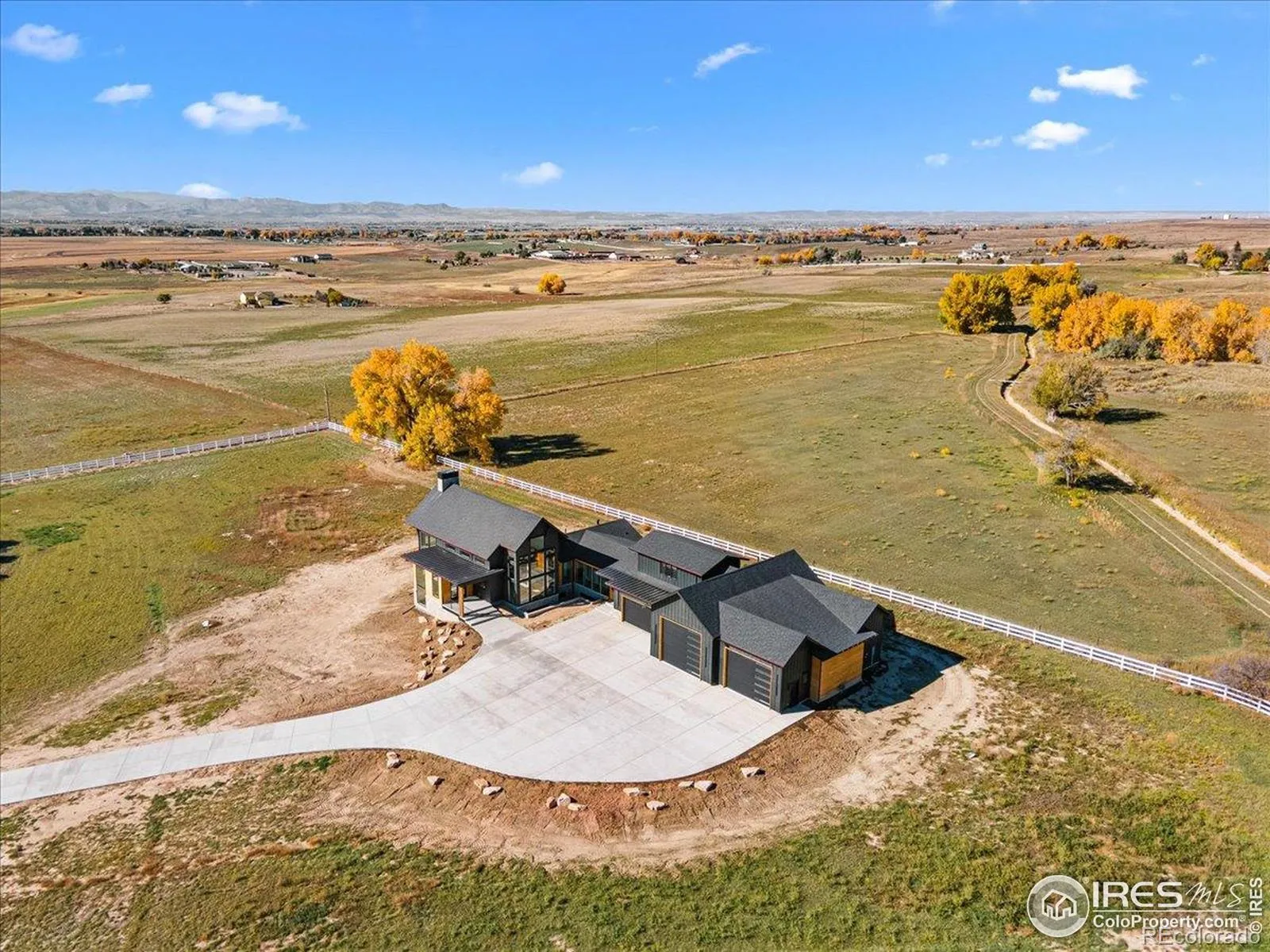 Nearly 3 years in the making from concept to reality – a truly one-of-a-kind custom-built home, the likes Northern Colorado has never seen before. Discover the coveted Waterford Hill subdivision – a private and gated (9) home estate community ideally located just 7min from I25, and 15min from Old Town on ALL PAVED roads! Perched atop THE prime 2.5 acre lot in the development, you will find this rare architectural gem with a Scandinavian “hygge” design. The focal point of this impressive home is the expansive main room with 28′ ceiling height, flanked on each end by structural windows. This daylight drenched room provides serene mountain views, acting as a seamless visual bridge to the outdoors. Cozy-up on the inviting window sofa while you enjoy the wood burning fireplace, or sip on coffee in the upholstered breakfast nook. The tranquil primary suite, outfitted with acoustical wood paneling, provides peaceful sleep before awaking to picturesque views from bed. The primary bathroom features a European style washroom with stone tub, heated bathroom floors, bidet, and functional custom storage. A picturesque glass gallery hallway leads you to the laundry/mud room and into the intentional garage spaces. Behind the oversized 2-car garage, there is a storage area + lawn care garage fitted w/ its own garage door. Last but not least you enter into the 2246sqft heated shop/RV garage – a space thoughtfully crafted for the most discerning auto enthusiasts: white epoxy floors, in-floor drain system, 15′ ceiling height, wash sink w/ hot + cold water, half-bathroom, (3) tv locations, (2) 50amp 240 Volt outlets, commercial grade power washer location, 12′ and 14′ tall commercial garage doors (16′ Wide), water hydrant, LED lighting, and more. A finished guest suite above the garage can function as a private office. Don’t miss the sunken media room in the basement, three additional bedrooms, secondary laundry and large exercise room. A truly bespoke property!