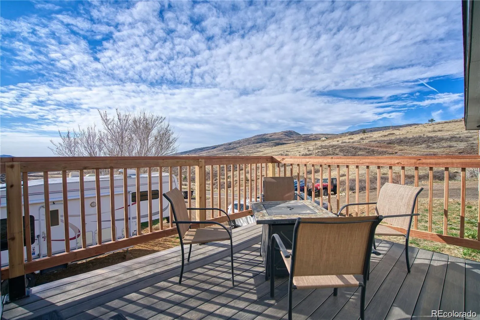 Wake up every morning to breathtaking mountain views and the fresh mountain air—all just west of Fort Collins and Horsetooth Reservoir. With easy access via paved roads, this 40-acre retreat offers the perfect blend of serenity and adventure. Outdoor enthusiasts will be thrilled with exclusive private land hunting tags for bear, elk, and deer. The Trex board deck and front porch are perfect for entertaining or simply soaking in the views. Indulge in ultimate relaxation with your Michael Phelps Master Spa hot tub—an unbeatable way to unwind under the stars. Embrace an adventure and hike over the ridge to enjoy a picnic in the meadow while taking in the picturesque waterfall. Inside, this home is designed for comfort in every season. A cozy wood-burning stove, brand-new water filtration system, and portable AC units keep you comfortable year-round. The newly remodeled bathrooms showcase modern, stylish finishes, while new carpet and LVP flooring give the home a fresh, updated feel. The spacious kitchen features a large center island, a newer KitchenAid dishwasher, and ample storage. The laundry room is equally impressive, with soft-close cabinets and a nearly new washer and dryer. This property is also built for sustainable living! A thriving peach tree, chicken coop, and drip irrigation system provide fresh food and effortless maintenance. With abundant RV parking and a large storage container, you’ll have plenty of room for all your gear, toys, and equipment. Don’t miss out on this rare opportunity to own a true mountain retreat—schedule your tour today!
