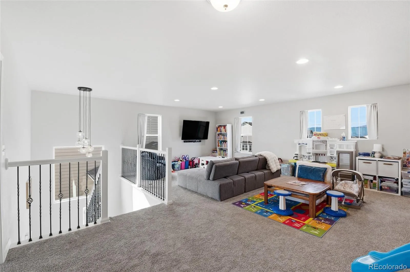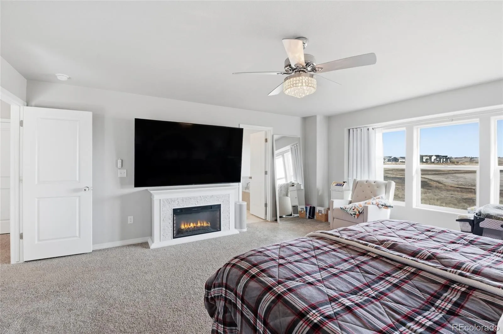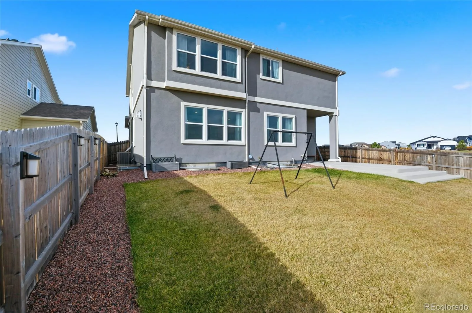 Welcome to this beautiful gem perfectly situated on a private end lot in a peaceful cul-de-sac. This remarkable property backs to open space, offering exceptional privacy, while mountain views from the front add to its Colorado charm. Enjoy serene surroundings with no homes to be built directly behind or across the green space, plus mountain views from the front, including a stunning view of Pikes Peak. Enjoy the quiet surroundings with minimal traffic and the friendly neighborhood atmosphere, complete with frequent community events and a nearby park and playground just steps away. Inside, you’ll find a light-filled, open layout that seamlessly connects the kitchen, dining, and living areas. The chef-worthy kitchen features abundant white cabinetry, double ovens, quartz countertops, a spacious pantry, and a large center island perfect for casual meals or gatherings. The cozy living room invites relaxation with its custom floor-to-ceiling stacked stone fireplace. A private main-level home office provides the perfect space for remote work or study. Upstairs, the home continues to impress with stunning Pikes Peak and mountain views. The expansive loft offers flexible space for a second living area or playroom, while three generously sized bedrooms each have walk-in closets. A thoughtfully placed upper-level laundry room adds to the home’s practical design. The newly finished basement features 9-foot ceilings—taller than most—and multiple egress windows for ample natural light. Currently set up as a professional-quality home gym, this space can easily be converted into a family room or recreation area. The basement also includes a full bedroom and bathroom, making it ideal for guests. The property includes an extra-deep four-car garage with custom overhead storage. This move-in-ready stunner offers a rare combination of tranquility, luxury, and community. Nestled in a quiet setting yet just minutes from modern amenities, this Sterling Ranch home truly has it all.