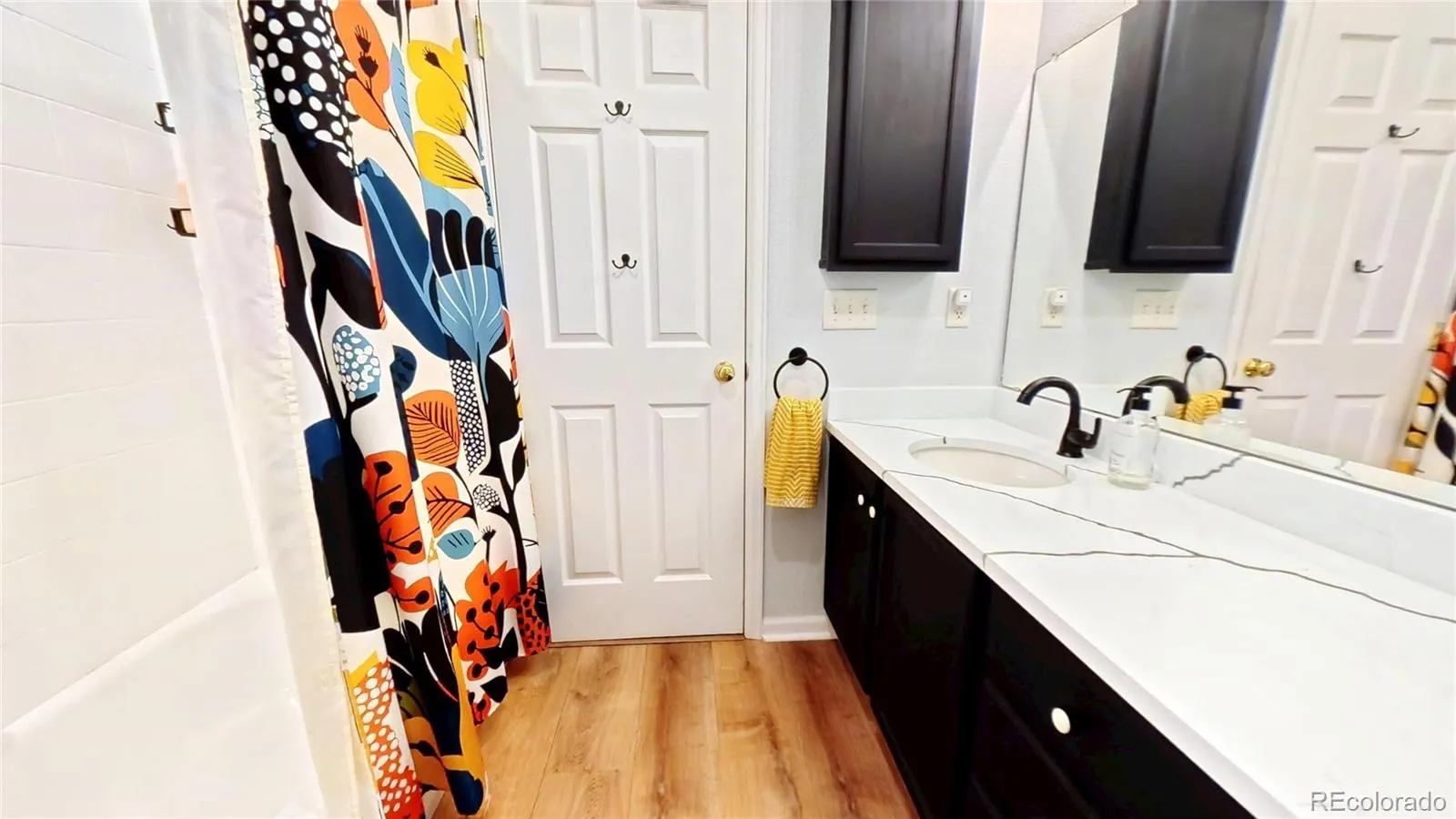 Upper Level: 3 bedrooms, full bath, and quarter bath off the primary