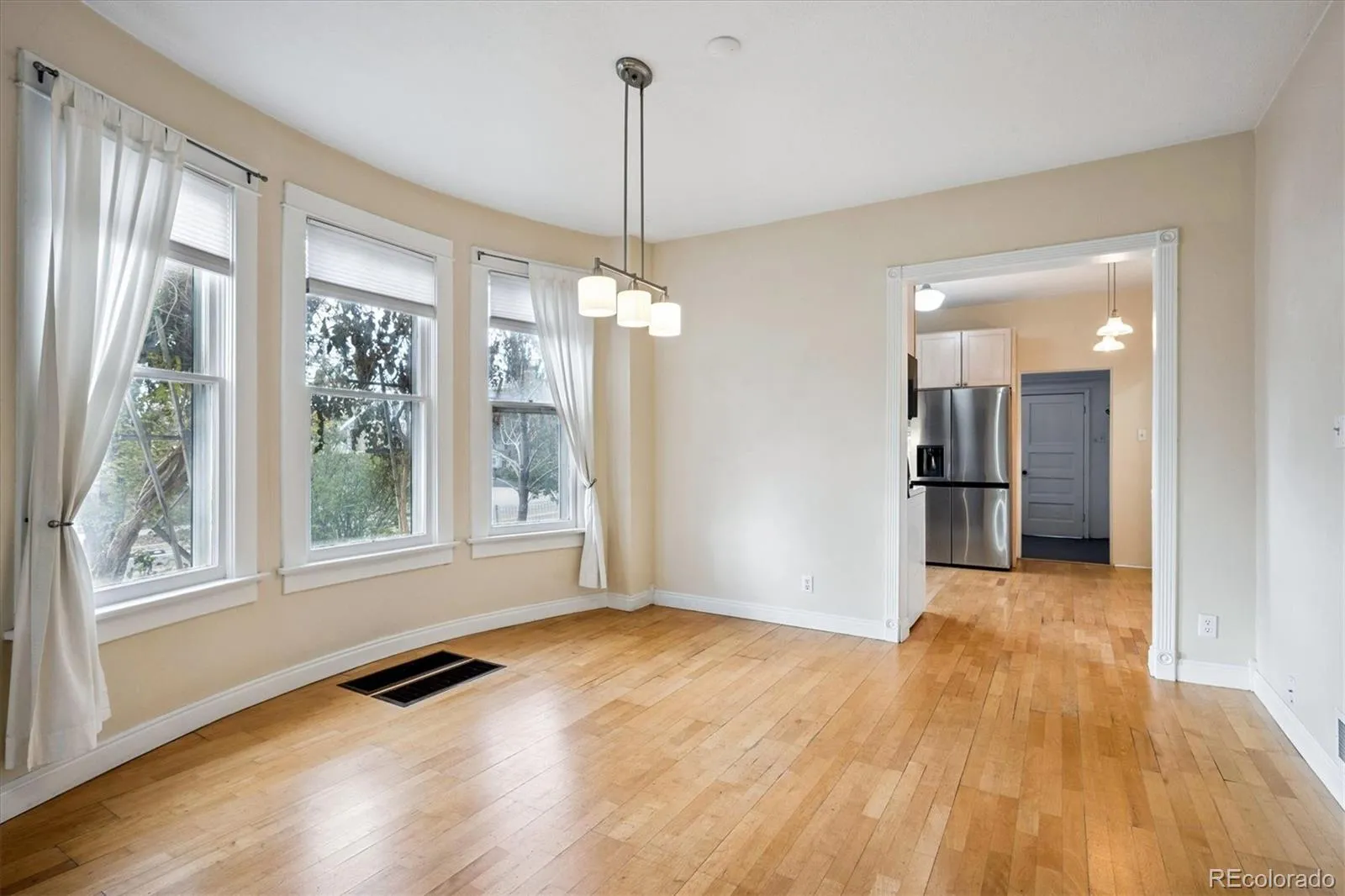 Step into a piece of Denver history with this well maintained 1910 bungalow, situated on a desirable corner lot in the sought-after West Highland neighborhood. Enjoy the charming front porch overlooking the tree lined street. Inside you’ll find an open and spacious living and dining area with wood floors and details that blend classic architectural charm with comfortable modern living, large windows fill this space with sunlight. The updated kitchen with newer cabinets and granite counters includes a space for a small table and offers functionality and style, making it ideal for both everyday living and entertaining. An adjacent wall of built-ins allows for plenty of pantry and storage space. Also on the main level are 2 bedrooms each with generous closets, a study/office overlooking the back patio and a full bath with refurbished claw foot tub, pedestal sink and period style tile work plus a convenient laundry/mud room. There is a back patio with string lighting plus a fenced side yard which could be extended and leads to the 1-car garage. The basement offers plenty of storage. The second floor presents incredible potential with a den and bedroom with vintage vinyl flooring tucked under the eaves. This second floor space presently does not have heat but there are options for adding heat in each of the two rooms. Or, add dormers and a bath and create a luxurious primary suite, the possibilities for this space are endless. Enjoy the convenience of being just minutes from Sloan’s Lake and the vibrant shops and restaurants of Edgewater, offering the best of both neighborhood charm and city living and you are only minutes from downtown Denver. Whether you’re looking to settle in right away or bring your own vision to life, this home is a rare opportunity in one of Denver’s most beloved historic districts. Don’t miss your chance to make this West Highland gem your own. Photos have been virtually staged.