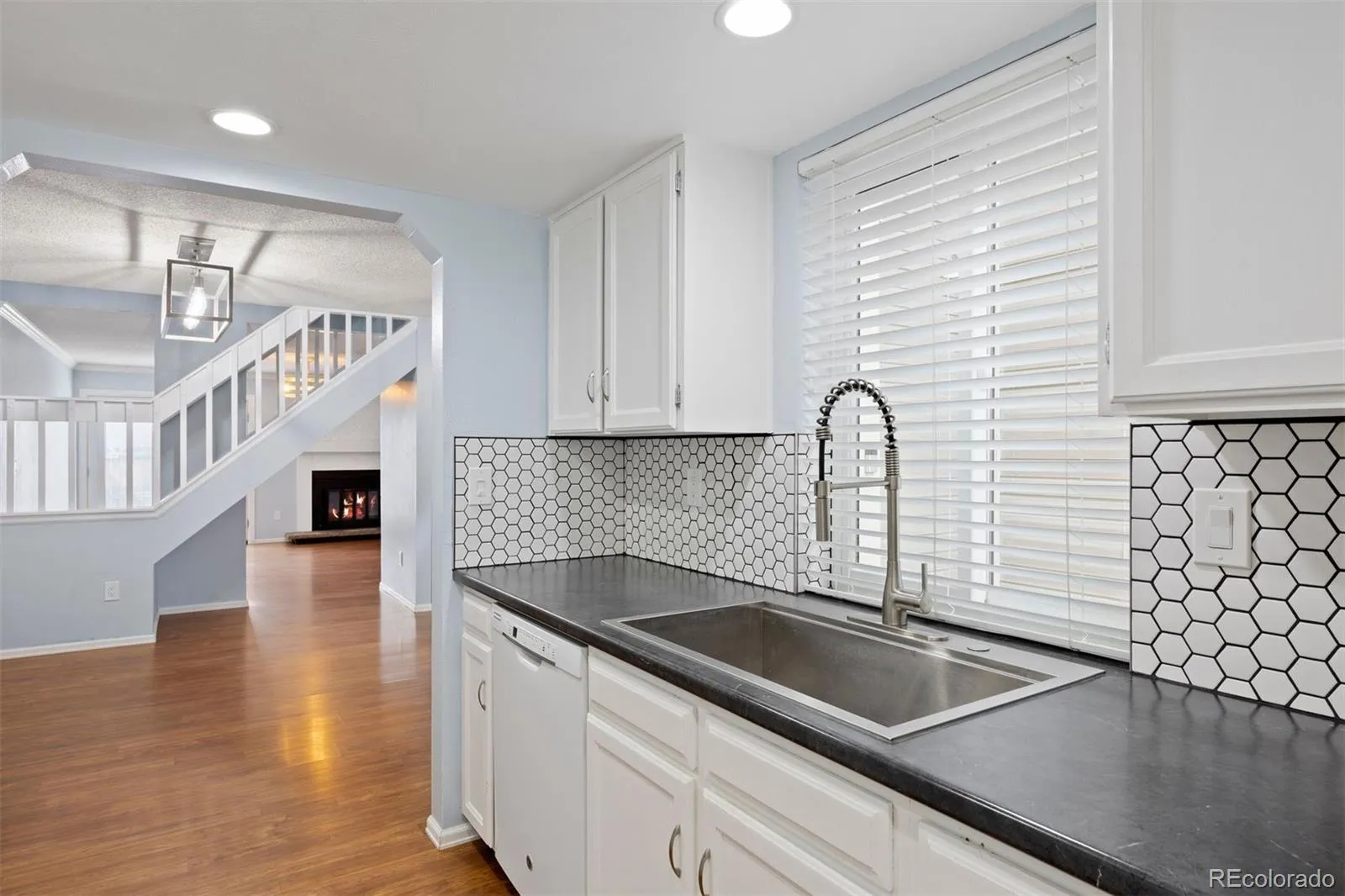 Your wait is over! This beautifully updated townhome in the coveted Cherry Creek School District is move-in ready, just in time for the holidays. Located in the Woodgate North community of only 116 homes, this home combines modern updates, comfort, and convenience. Most updates were completed in 2021, including the furnace, A/C, windows, and French doors with built-in blinds. The water heater in 2023, giving you peace of mind for years to come. Inside, enjoy laminate wood flooring on the main level, newer carpet, and updated lighting throughout. The light and bright kitchen features white cabinetry and appliances, accented by a dark marbled countertop and modern white tile backsplash. A convenient laundry room off the kitchen offers cabinetry, shelving (perfect for a pantry), and access to a generous crawl space running the length of the unit for extra storage. The open living room with ceiling fan and wood-burning fireplace creates a warm and welcoming atmosphere. A stylish powder bath showcases a stunning mystic blue vanity with marble top and gold fixtures. Upstairs, you’ll find two spacious primary suites, each with en-suite bathrooms. The front primary impresses with a double-sink vanity, marble top, black fixtures, beveled subway tile shower with decorative inlay, glass doors, and dual closets. The secondary suite offers its own separate vanity, tub/shower, and linen closet for more of that great storage! Additional highlights include two reserved parking spaces right out front, nearby visitor parking, and an HOA that covers exterior maintenance, roof (recenlty replaced), snow removal, trash, water, and sewer. Conveniently located near Smoky Hill & Chambers, with easy access to Parker Road, I-225, DTC, and DIA. Bike to Cherry Creek State Park or hop on the nearby light rail. Shopping, dining, and entertainment are just minutes away at Southlands Mall. Listing broker is providing a comprehensive HOA Summary Report for buyers viewing, inquire with broker.