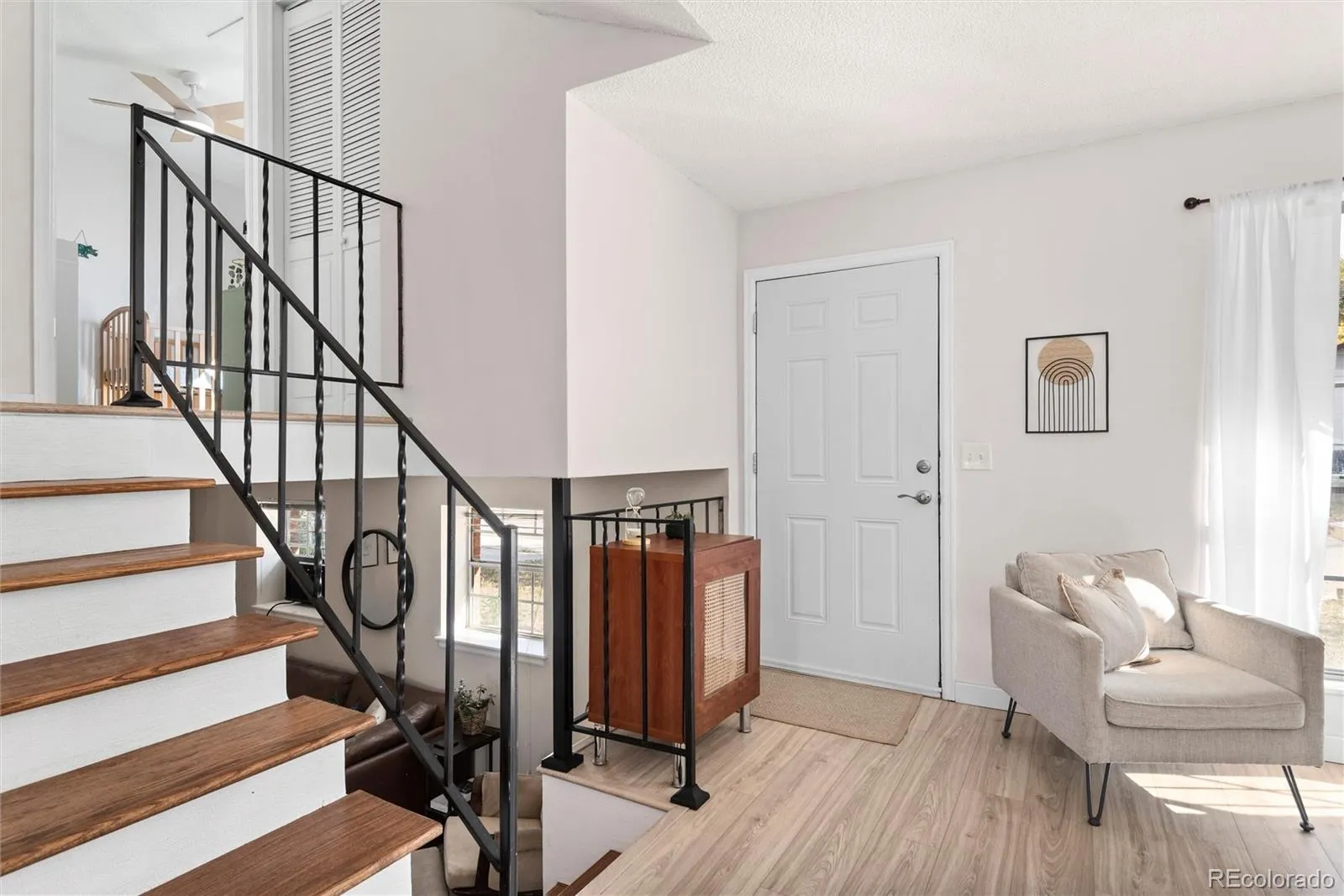 Upstairs, you’ll find two bedrooms and a full bath refreshed with a new faucet, mirror, lighting, and flooring. The expansive primary bedroom includes direct access to the bath, a generous walk-in closet, and fresh paint throughout. The second bedroom is equally inviting, with a large closet, a new ceiling fan, and warm western light.
