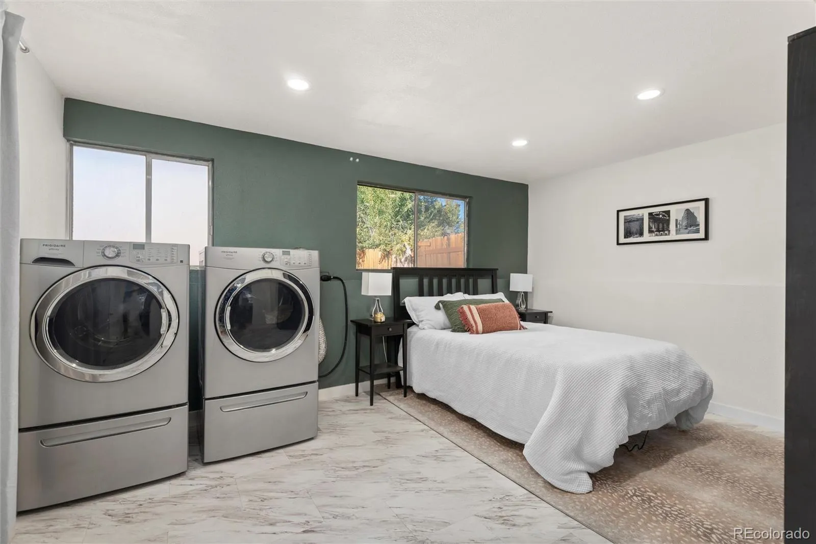 Upstairs, two bedrooms and a refreshed full bath await, complete with new faucet, mirror, lighting, and flooring. The spacious primary bedroom offers direct access to the bath, a generous walk-in closet, and fresh paint. A second bedroom features a large closet, new ceiling fan, and warm western light.