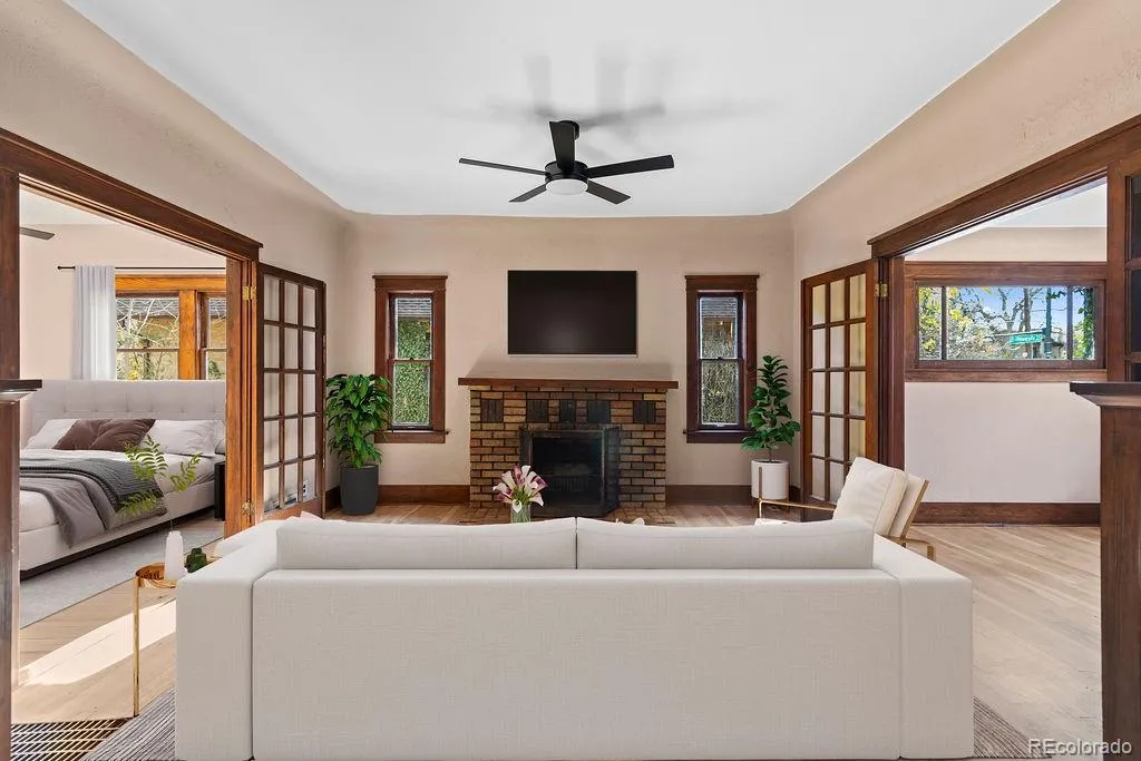 Discover the perfect blend of classic Denver character and everyday convenience at 1272 S University Boulevard. This timeless brick bungalow offers walkable city living just minutes from Washington Park, South High School, the University of Denver, and South Gaylord Street’s local shops, coffee and dining favorites. Step inside to a cozy entry space and light-filled living room offering original architectural details that pair beautifully with the freshly refinished hardwood floors throughout. This welcoming layout flows easily into the dining area, perfect for dinner with friends or quiet evenings in. Continuing through the main floor, you’ll find a functional kitchen ready for updating to your taste, a bedroom featuring French doors and a remodeled full bath offering stunning tile work and shower. Upstairs you’ll find a private and oversized second bedroom offering a very unique set up with flexible living arrangements, while the finished basement includes a non-conforming bedroom that’s ideal for guests, a home gym, or a creative workspace. The basement also features a bonus room, laundry & utility areas and multiple storage spaces rarely found in city bungalows of this era. Outside, enjoy Colorado’s sunshine from your private backyard with professionally xeriscape landscaping, complete with a gazebo, a garage and two separate driveways offering ample off-street parking for convenience. The 6,250 sq ft lot provides room for gardening, pets, or outdoor entertaining—all within one of Denver’s most desirable central locations. With its inviting character, versatile floor plan, and intentional updates including a brand new roof, new water heater, newly xeriscaped front and back landscaping, this home is ready for some of your own updates while offering an unbeatable location, tons of charm, comfort, and convenience for today’s modern lifestyle. Call to set up your private showing today!