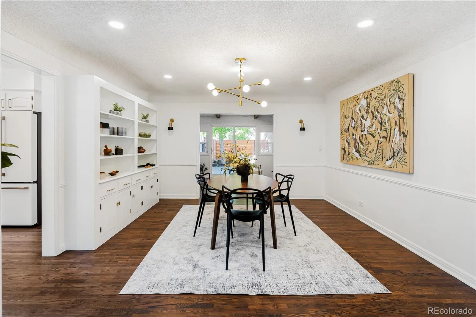 This is North Park Hill living at its best and it just got even more charming with this move-in ready, ranch-style home on a spacious lot. This mid-20th-century gem blends timeless character with thoughtful modern updates throughout. Step inside to find gleaming hardwood floors, original built-ins, and an open, inviting layout designed for everyday living and effortless entertaining. The remodeled eat-in kitchen is the heart of the home, featuring crisp white cabinetry, granite countertops, a center island, and a full suite of new Café appliances, perfect for the dedicated home cook or enthusiastic host. The main living room, anchored by a cozy gas fireplace, creates a welcoming gathering space, while a separate den offers wood-beam ceilings, painted exposed brick, a second fireplace, and direct backyard access for seamless indoor-outdoor flow. A formal dining room with built-in cabinetry and updated lighting sits at the center of the home, ready for memorable meals and celebrations. The oversized bedrooms provide generous closet space, while the primary suite feels like a private retreat with a bonus sitting area and easy walk-out access to the backyard. The main-level bathroom impresses with a dual-sink granite vanity, walk-in shower, and jetted soaking tub. The fully finished basement expands your living options with reclaimed wood accents, a kitchenette, a bedroom with egress, and a ¾ bath, deal for guests, in-laws, roommates, or a home office/workspace. Step outside to a private, fully fenced backyard with a large patio, plenty of room for outdoor dining, gardening, play, and pets. Major updates provide peace of mind, including newer furnace, gutters, siding, sewer line to tap, and solar panels for energy efficiency. Mature landscaping adds to the quiet, welcoming setting.Just a short stroll to Oneida Park and Kearney Plaza for coffee, dining, shopping, and community fun. Easy access to City Park, Downtown Denver, Central Park amenities and no HOA.