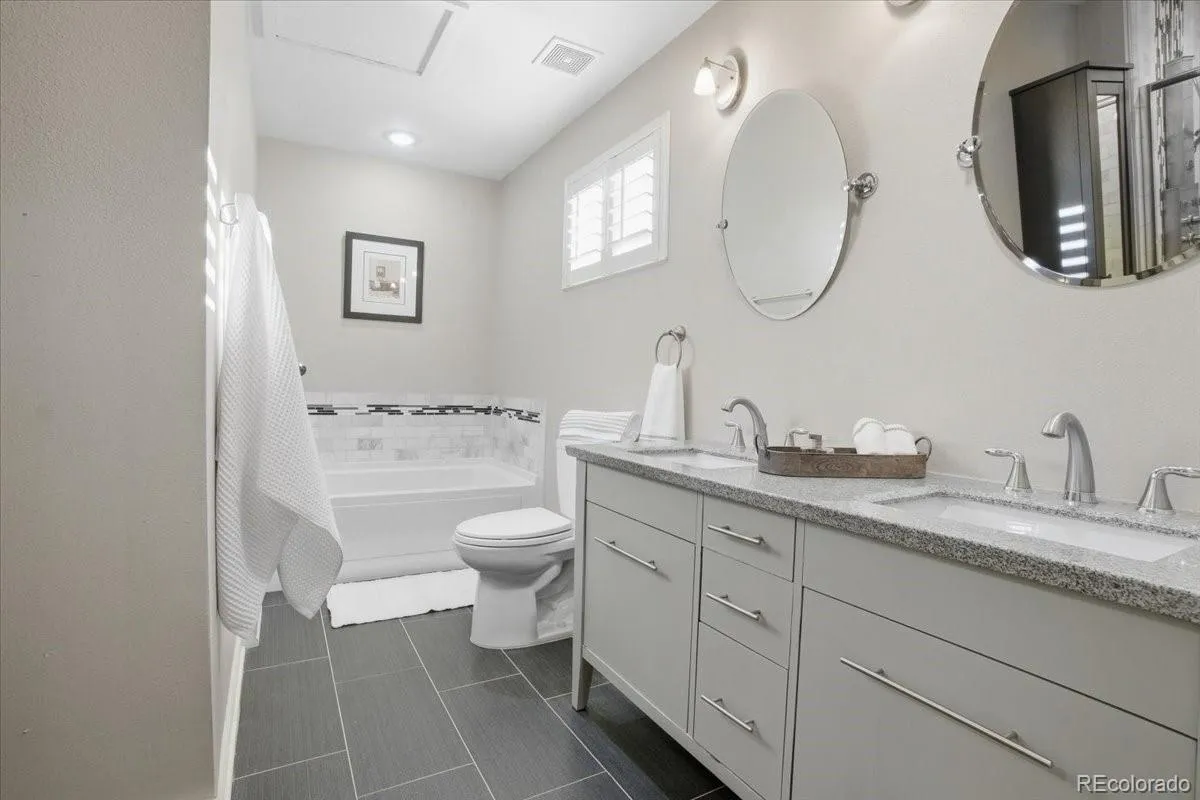 Upstairs, you’ll find four bedrooms, including a large master suite with a walk-in closet and a full bath with dual sinks and a jacuzzi tub. The three additional bedrooms share a full bath and have cedar closet floors.